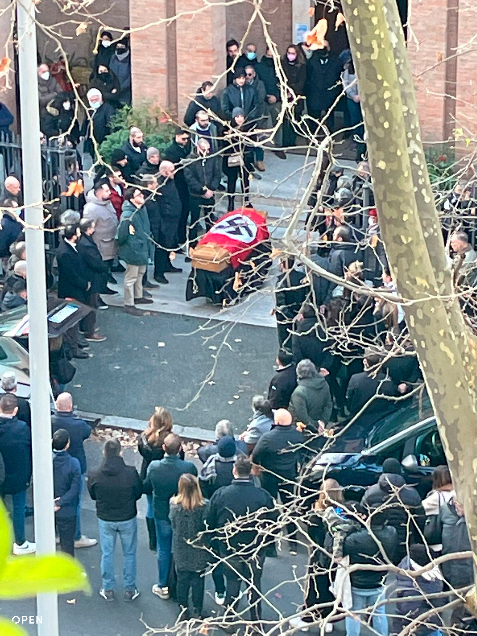 Fotos y videos de la escena afuera de la iglesia de Santa Lucía tras el funeral del lunes fueron publicados por el portal noticioso italiano Open. Las imágenes muestran a una veintena de personas afuera de la iglesia mientras dolientes sacan el féretro con la bandera nazi gritando “¡Presente!” con el brazo derecho alzado en el saludo fascista.