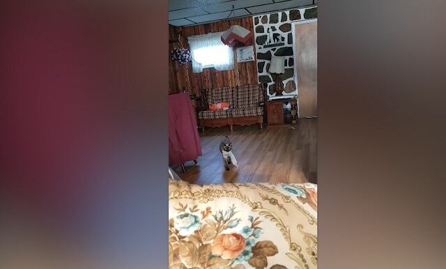 Sylvie Plante, de 55 años, de Louiseville (Canadá) ha sorprendido con esta peculiar forma de jugar con su gata Cléo. Sylvie se entretiene lanzándole a su gata su juguete favorito, un ratón de juguete mullido.