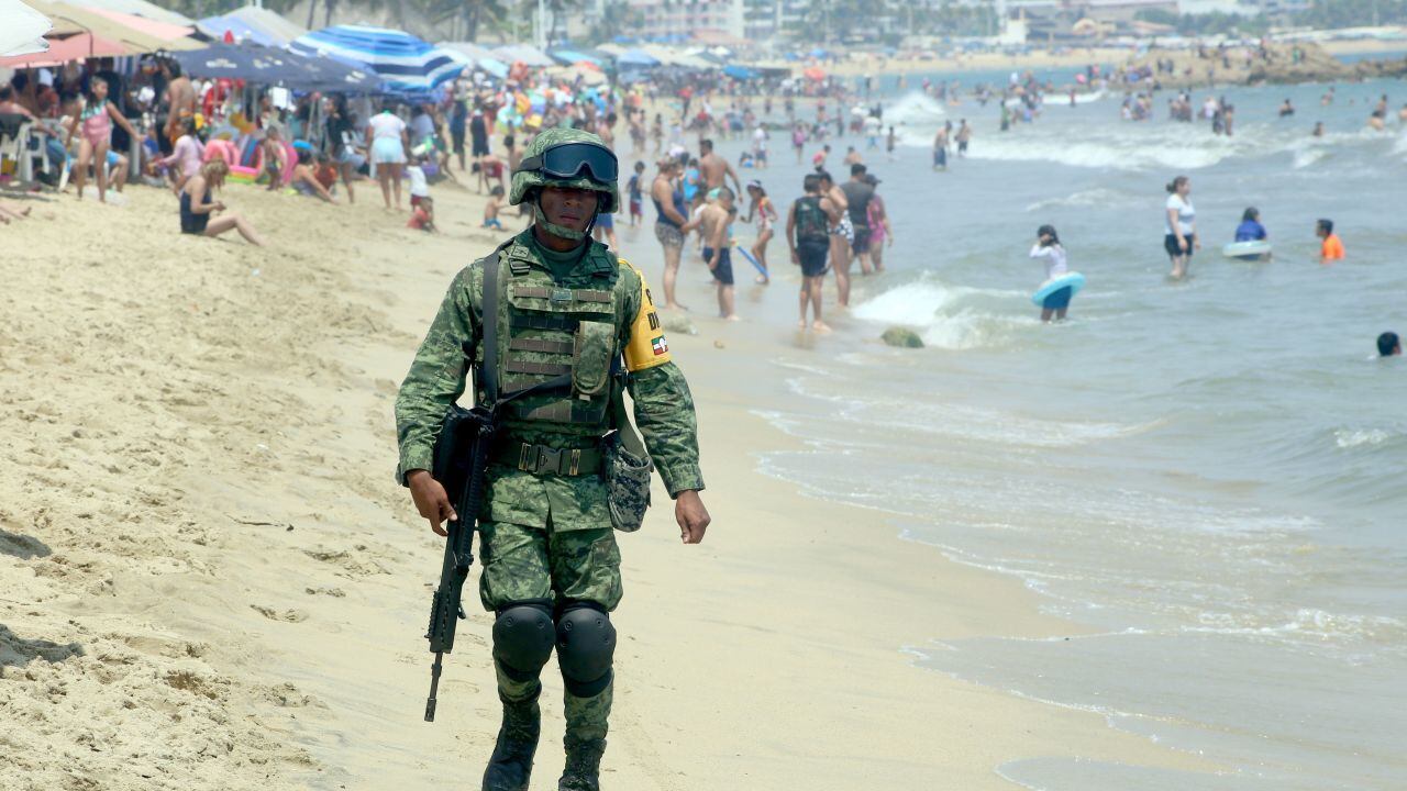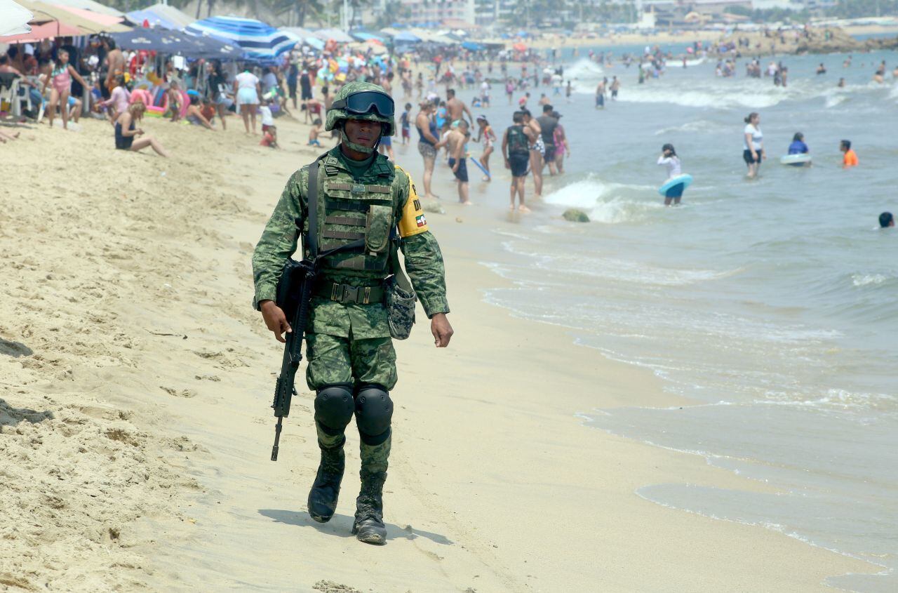 Quintana Roo. Elementos de policía militar de la entidad realizan recorridos en los alrededores de las playas mientras cientos de turistas disfrutan. (Elizabeth Ruiz/Elizabeth Ruiz)
