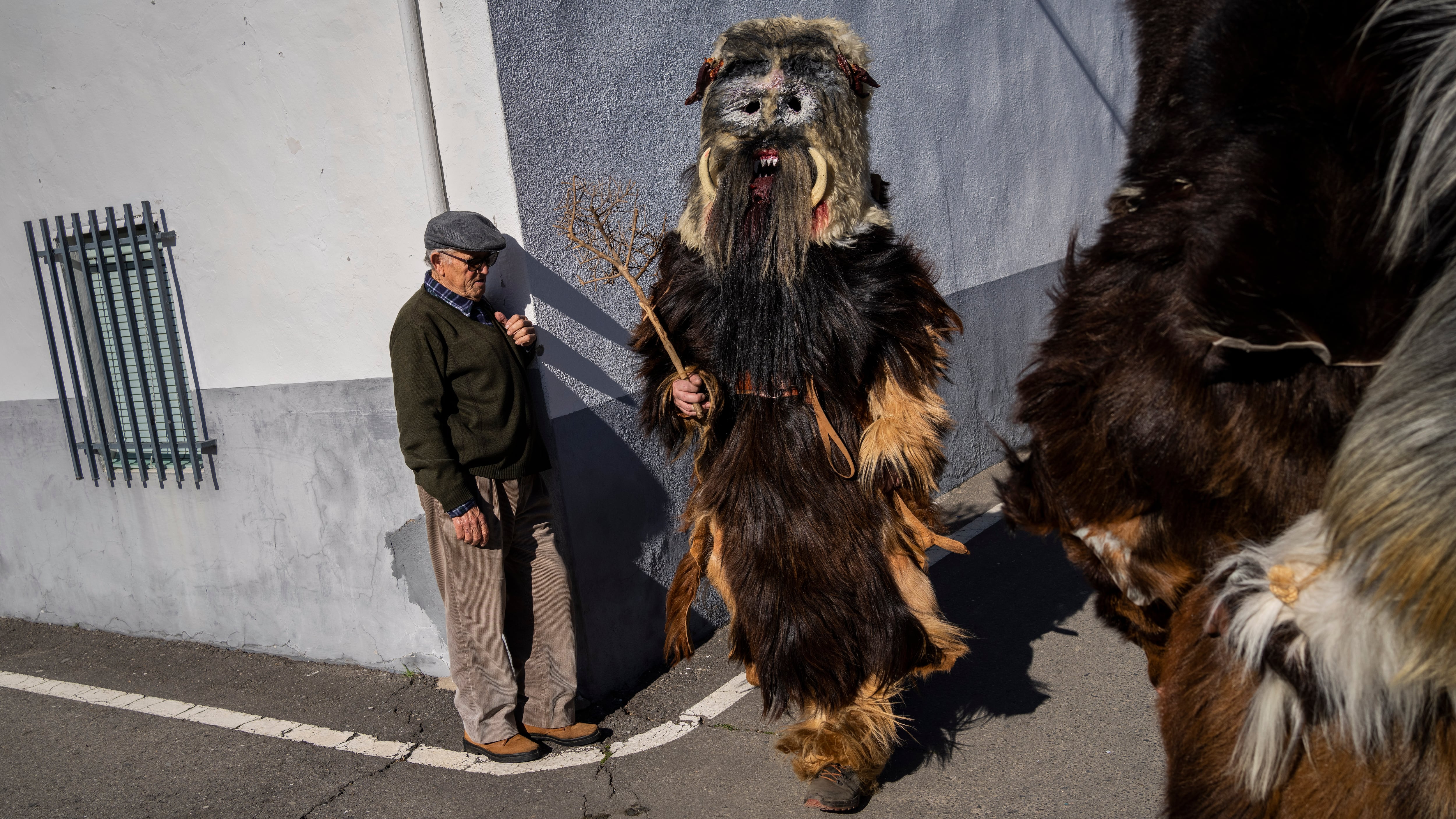 El ruido despierta a los vecinos para una de las fechas más importantes del calendario local: la celebración de tres días de los personajes cubiertos de piel conocidos como “Carantoñas”, que se asemejan a las fieras.