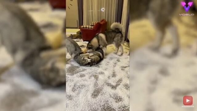 El bloguero Mike Bakunovitskyi, de 30 años, regresó a su casa de Járkov (Ucrania) tras un día de trabajo y se encontró con un desorden devastador. Cuando llegaron a casa, Mike y su novia, Lera se encontraron con que su husky siberiano, Rokky, y sus dos malamutes de Alaska, Mike y Leksy, se habían entretenido masticando un mueble entero.