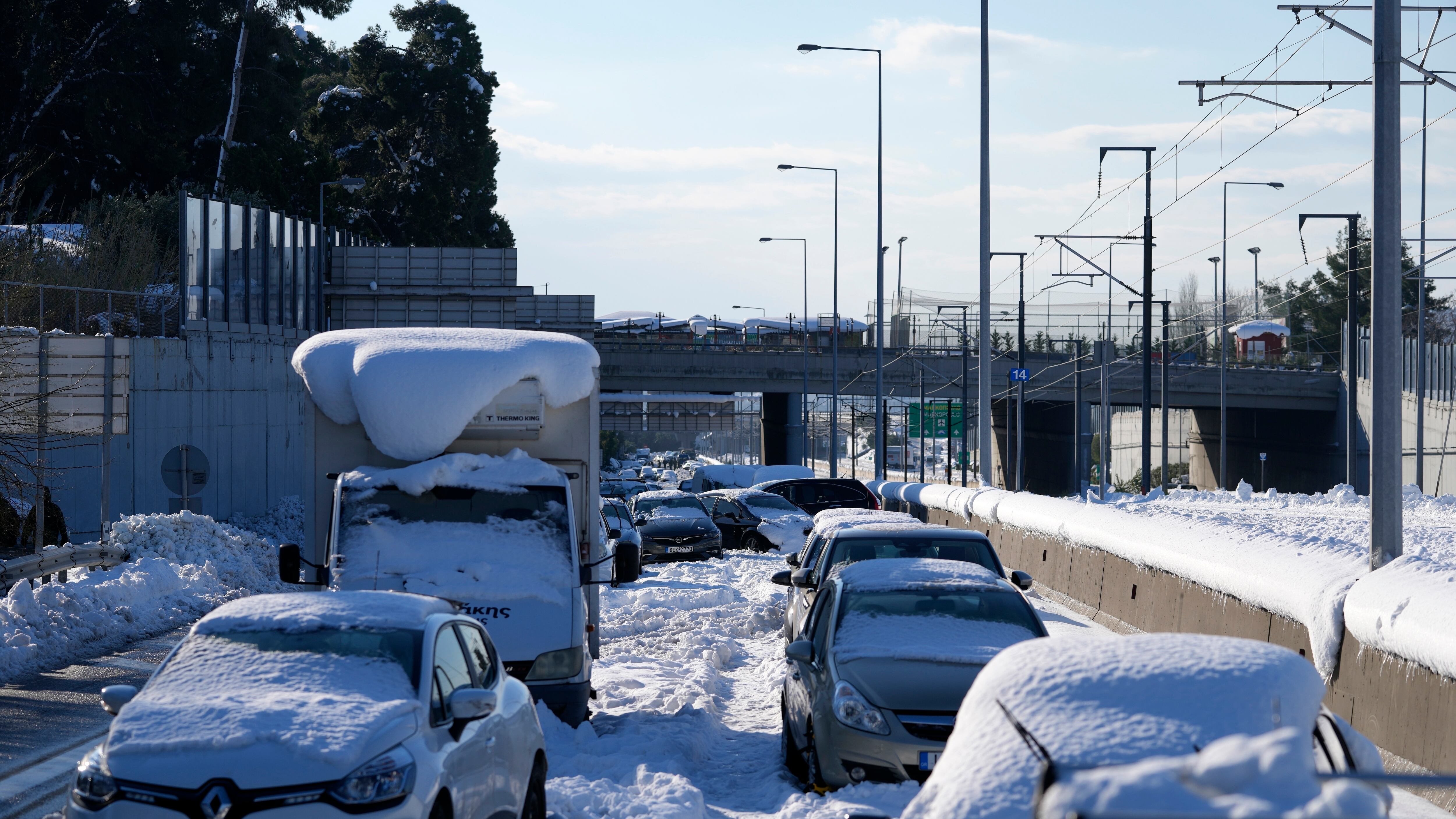 La nieve cubrió Atenas y gran parte del país el lunes, dejando a miles de conductores atrapados durante horas en las principales carreteras de la capital griega. Muchos se vieron obligados a pasar la noche en sus automóviles.