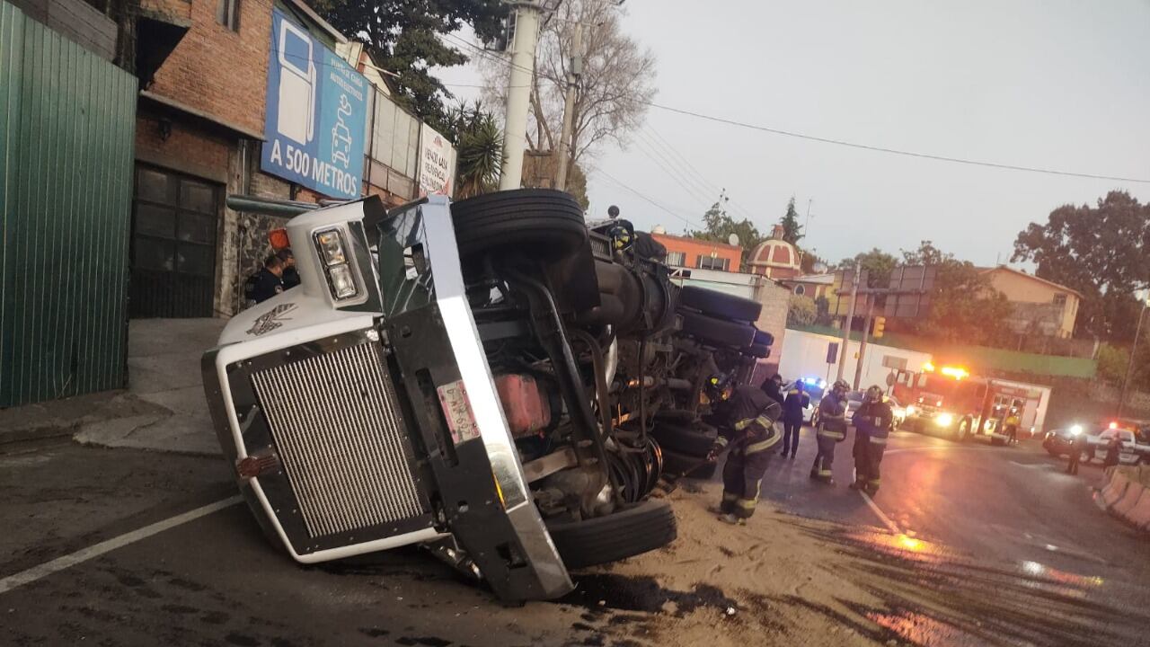 Un tráiler que transportaba 12 toneladas de productos perecederos sufrió una volcadura la mañana de este miércoles en Av. Insurgentes, esq. con Viaducto Tlalpan, a la altura del acceso a la autopista México-Cuernavaca.