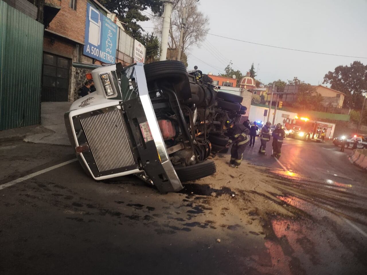 Un tráiler que transportaba 12 toneladas de productos perecederos sufrió una volcadura la mañana de este miércoles en Av. Insurgentes, esq. con Viaducto Tlalpan, a la altura del acceso a la autopista México-Cuernavaca.