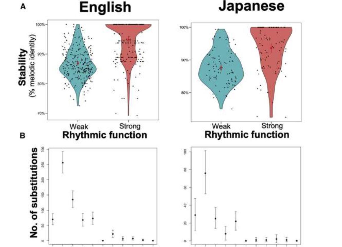 A pesar de las diferencias de idioma, las canciones populares japonesas e inglesas tienen regularidades interculturales similares en su evolución musical.