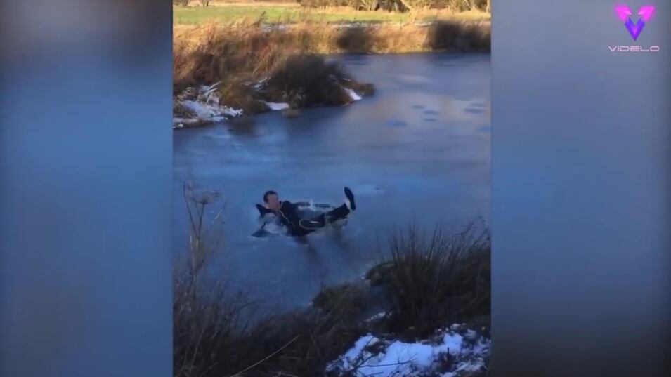 Matthew intentaba correr por el estanque congelado hacia el otro lado cuando perdió el equilibrio sobre el hielo. Siguió deslizándose por el hielo mientras intentaba recuperar el equilibrio, antes de caer de espaldas y romperse por el impacto, dejándolo muy mojado y con frío.