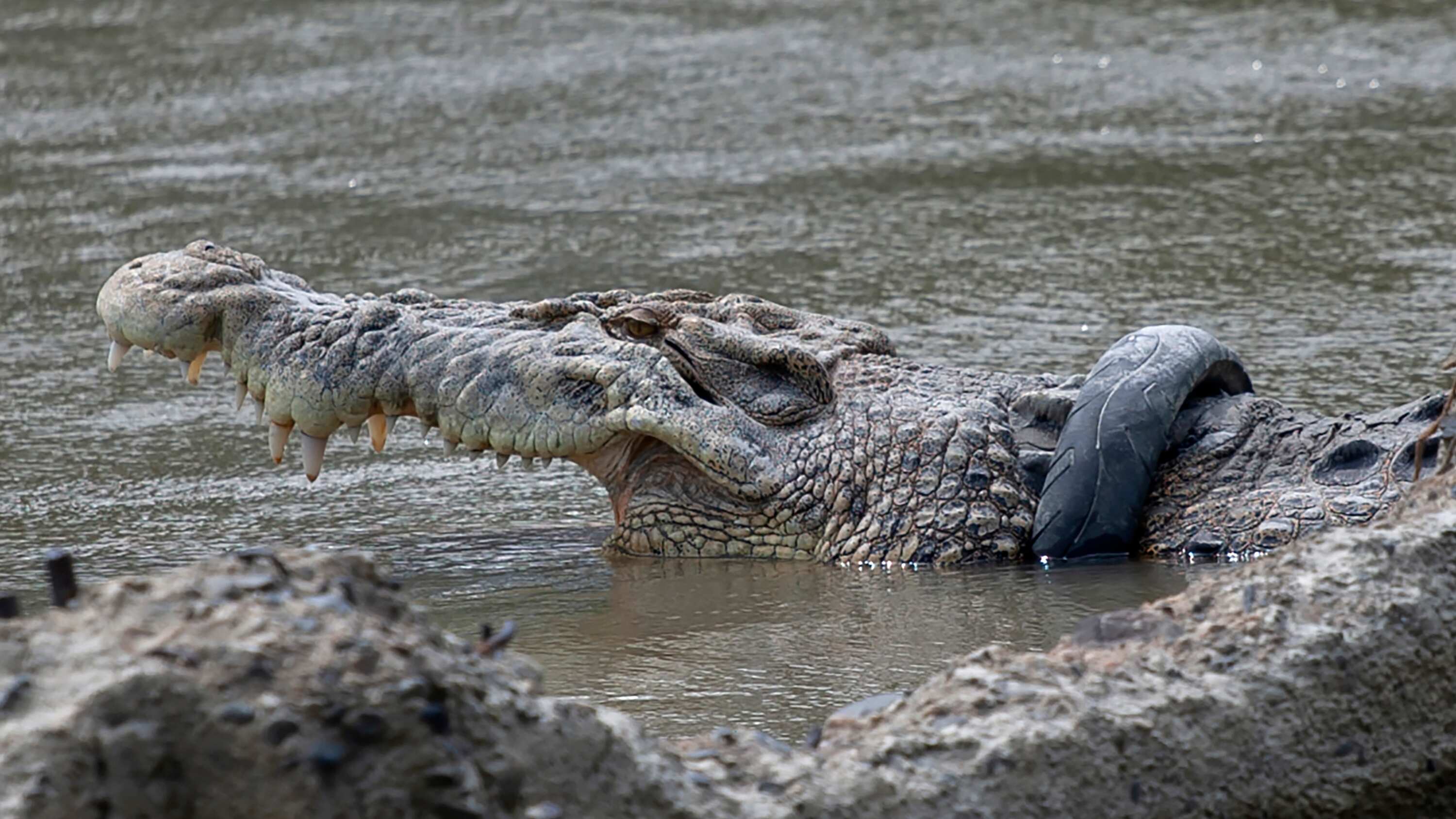 La hembra de cocodrilo de agua salada de 4,5 metros (14,5 pies) de largo se ha convertido en un ícono para los habitantes de Palu, la capital de Célebes Central. El animal fue visto en el río de la ciudad con la llanta alrededor del cuello cada vez más apretada, corriendo el riesgo de que la asfixiara.