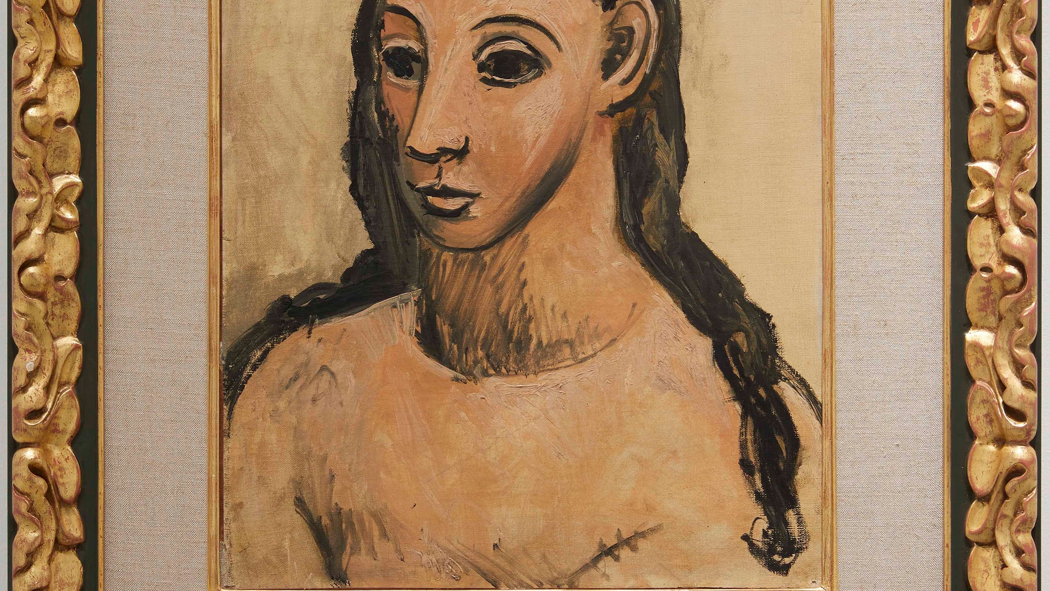 Picasso abandonó en Gósol su etapa rosa para ensayar un nuevo lenguaje primitivo y antiacadémico, deliberadamente inacabado, esquemático, de contornos delineados y formas sólidas y monumentales, características que se pueden observar en ‘Busto de mujer joven’, donde retrata a Fernande Olivier, su pareja en ese momento y compañera del viaje a Gósol.