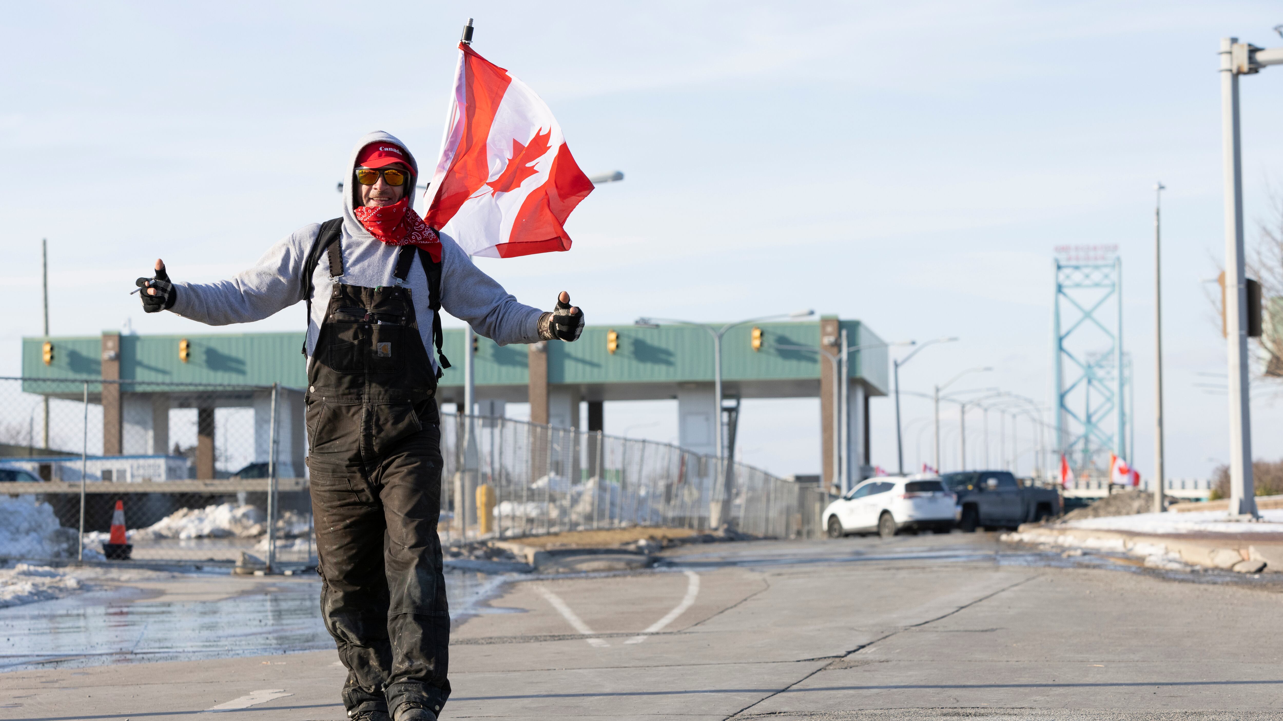 La manifestación autodenominada Freedom Truck Convoy, entró en su cuarto día el jueves en el Puente Ambassador que conecta Windsor, en la provincia canadiense de Ontario, con la ciudad estadounidense de Detroit, interrumpiendo el flujo transfronterizo de autopartes y otros productos.