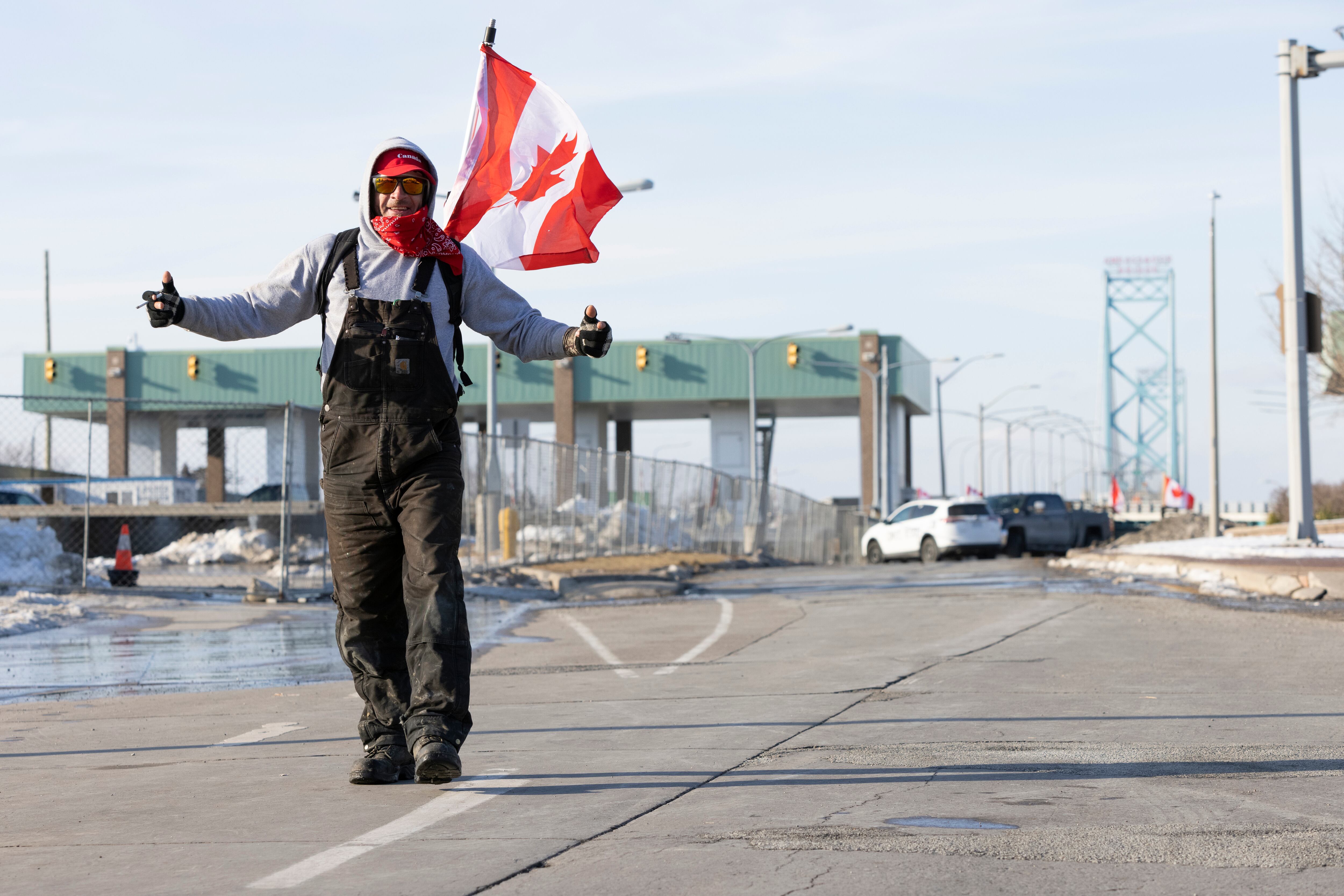 La manifestación autodenominada Freedom Truck Convoy, entró en su cuarto día el jueves en el Puente Ambassador que conecta Windsor, en la provincia canadiense de Ontario, con la ciudad estadounidense de Detroit, interrumpiendo el flujo transfronterizo de autopartes y otros productos.
