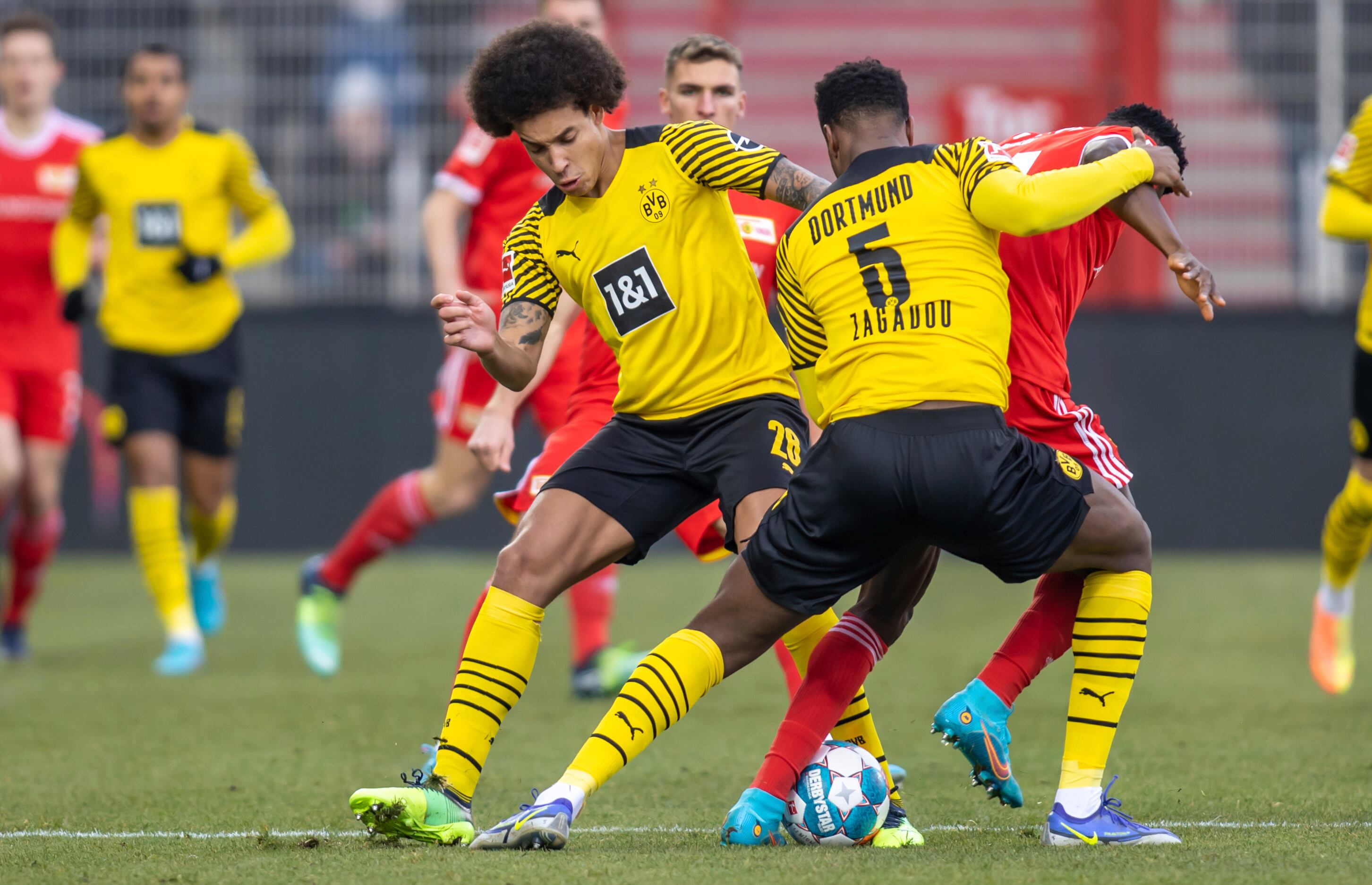 El capitán del Dortmund abrió el marcador a los 18 minutos cuando Mahmoud Dahoud lo habilitó para que disparara entre las piernas de Andreas Luthe, luego anotó de nuevo siete minutos después cuando Donyell Malen contuvo a Robin Knoche y Bastian Oczipka. Reus rodeó al portero de Unión antes de superarlo con un ángulo cerrado.
