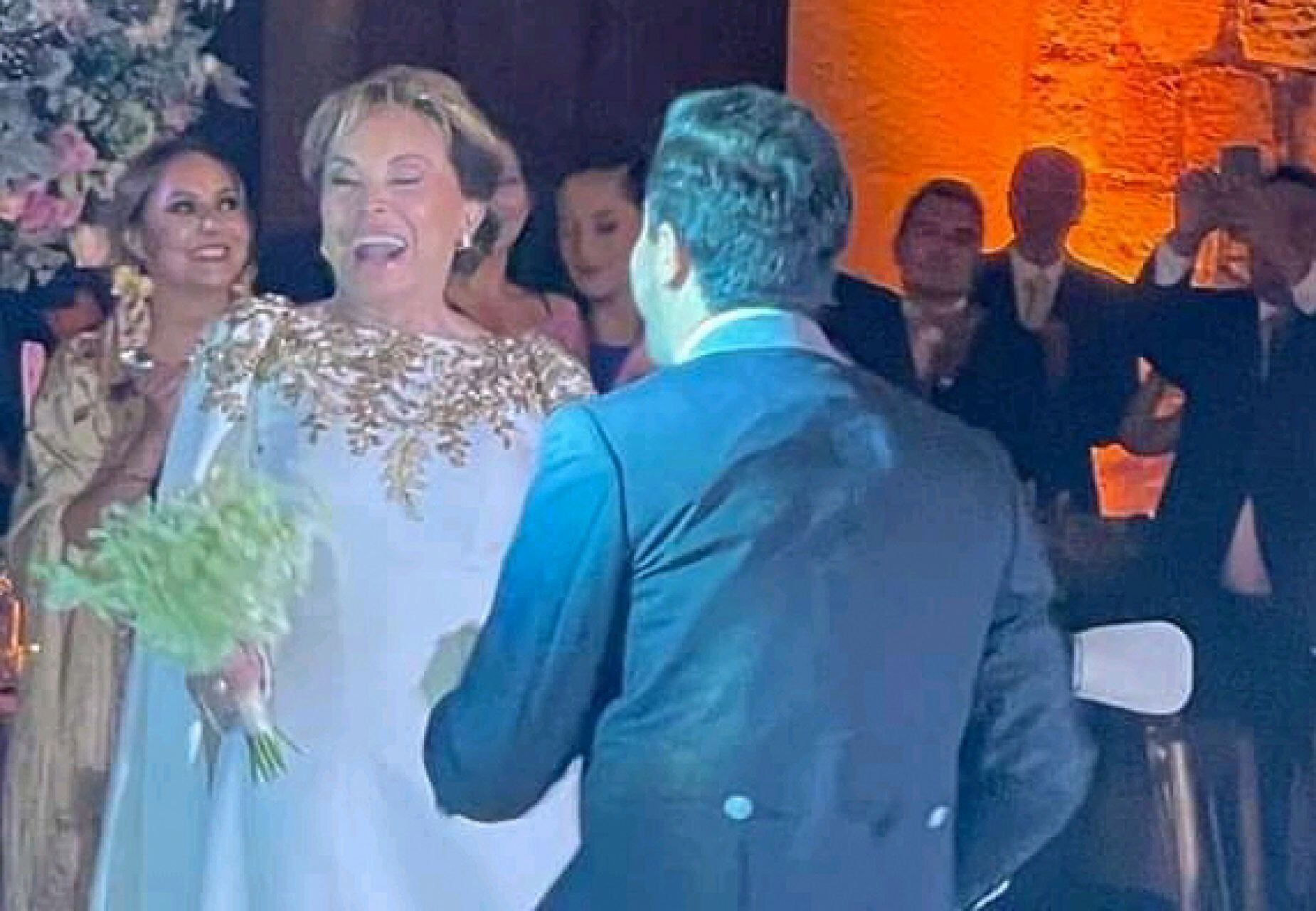 Pese a los destrozos de presuntos miembros de la sección 22 del SNTE en el Jardín Etnobotánico de Oaxaca, recinto donde se celebraría la fiesta, la dirigente sindical olvidó rápidamente sus problemas de salud que la llevaron a prisión domiciliaria hace algunos años para llegar al altar y lucir un vestido blanco entre al menos 150 invitados.