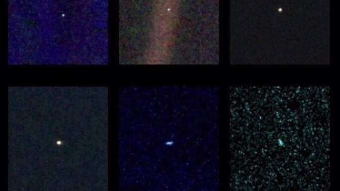 Tomar estas imágenes no era parte del plan original, pero el fallecido Carl Sagan, miembro del equipo de imágenes de la Voyager en ese momento, tuvo la idea de volver la nave mirando a casa para echar una última mirada. El título de su libro de 1994, «Pale Blue Dot» (punto azul pálido), se refiere a la imagen de la Tierra en esta serie.