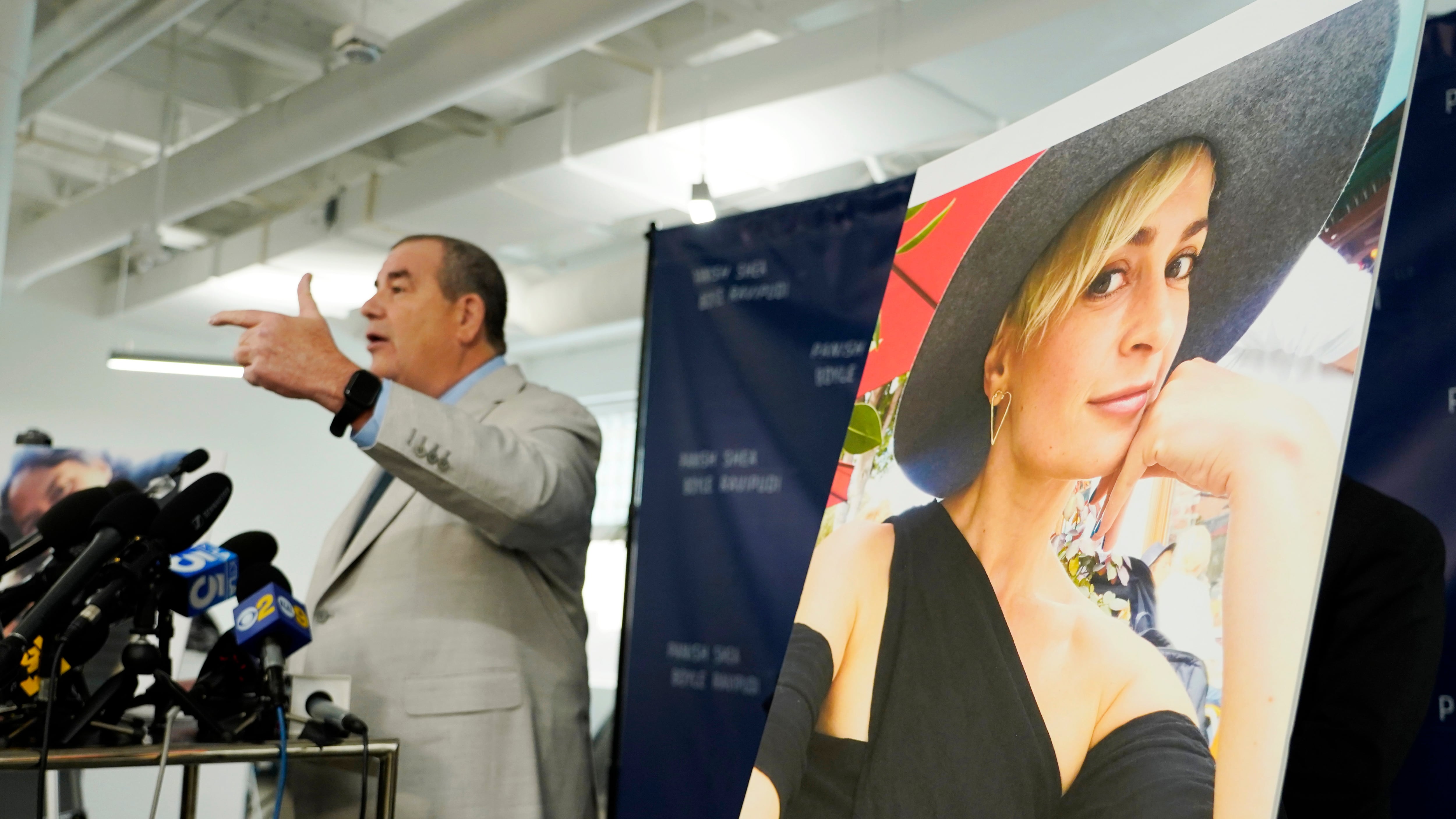 Los abogados de la familia de Halyna Hutchins anunciaron la demanda presentada en Nuevo México a nombre del esposo de Hutchins, Matthew Hutchins, y su hijo, Andros, en una conferencia de prensa en Los Ángeles el martes.