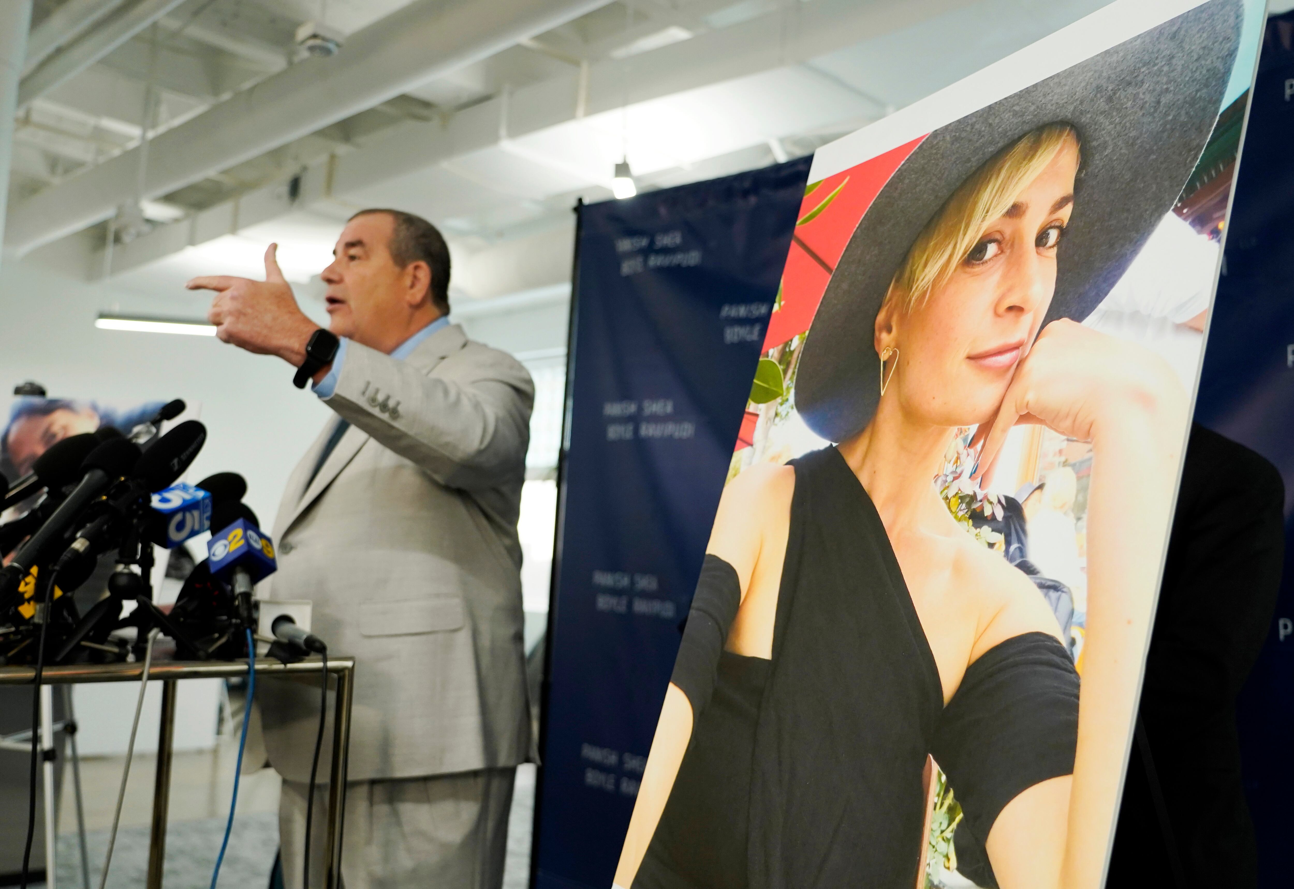 Los abogados de la familia de Halyna Hutchins anunciaron la demanda presentada en Nuevo México a nombre del esposo de Hutchins, Matthew Hutchins, y su hijo, Andros, en una conferencia de prensa en Los Ángeles el martes.