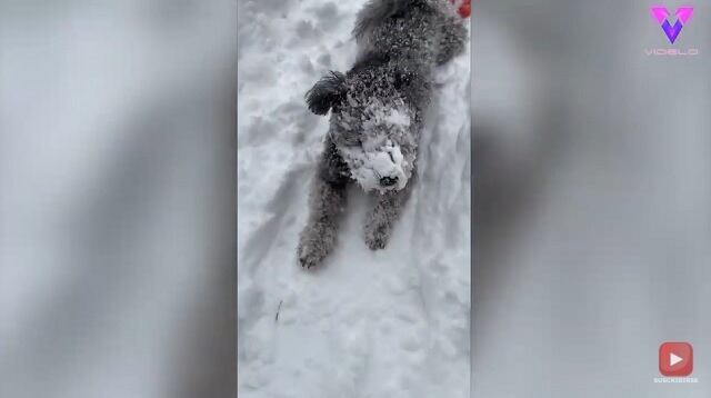 Samu nunca vio a Gabi tan entusiasmado por pasear en la nieve. Gabi, se revolcó en la nieve como la mayoría de los perros hacen con la hierba. El Pumi de dos años y medio, hundió su hocico en la espesa nieve, se estiró y se retorció intensamente.
