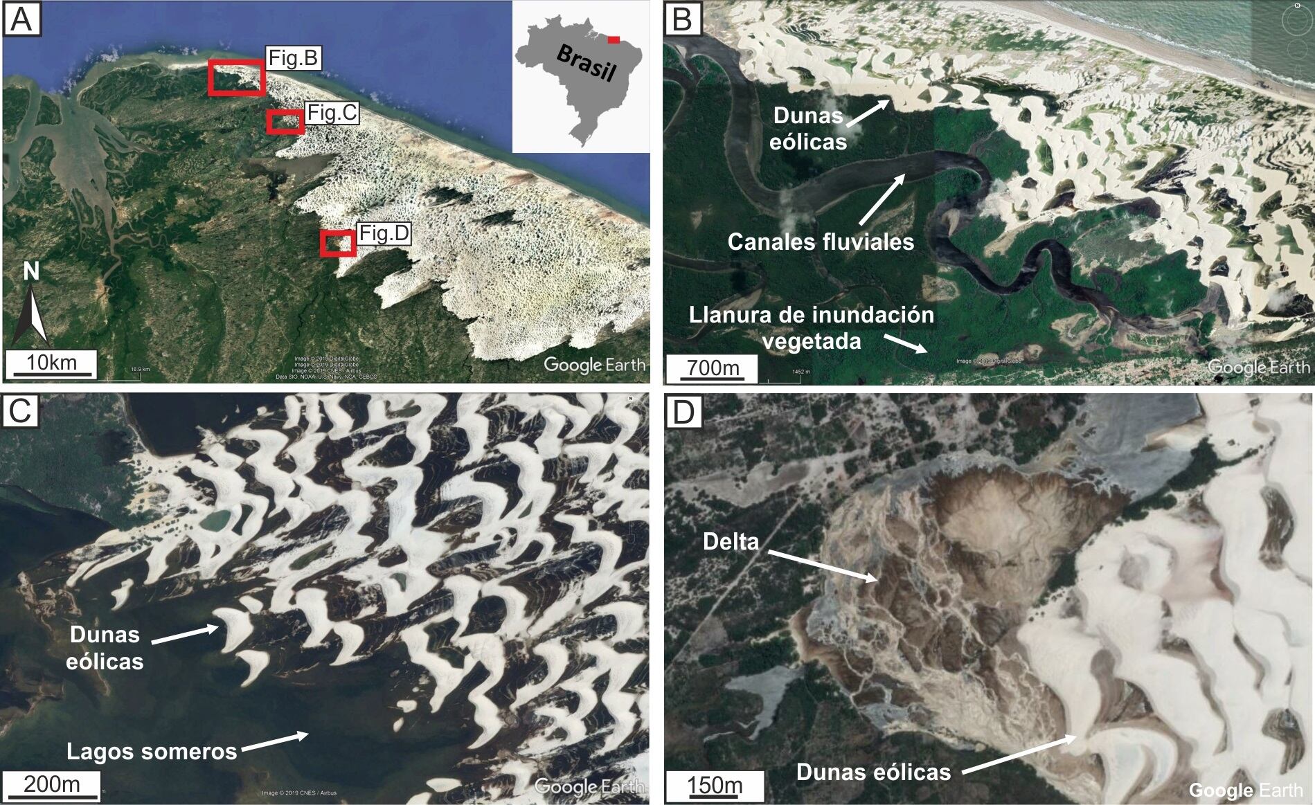 La profesora Titular de la Universidad Complutense de Madrid, María Isabel Benito, investigadora principal de uno de los proyectos que ha financiado este estudio, ha precisado que este sistema costero «se sitúa en una región de Brasil en la que se desarrollan lluvias estacionales, en la que hay dunas eólicas que se desarrollan y avanzan sobre deltas formados en lagos someros de agua dulce, ríos y llanuras de inundación que tienen abundante vegetación, de forma muy similar a los ambientes sedimentarios que había en el Jurásico Superior y en los que vivían los dinosaurios».