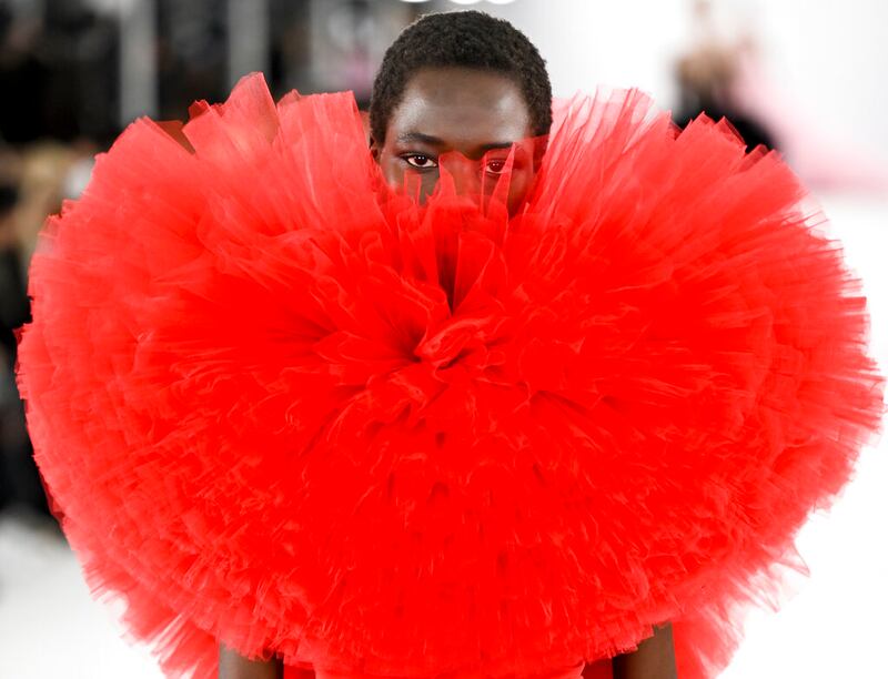 NUEVA YORK, ESTADOS UNIDOS Una modelo presenta piezas de la colección otoño-invierno 2022 de Carolina Herrera en la Semana de la Moda de Nueva York. (Evan Agostini/Evan Agostini/Invision/AP)