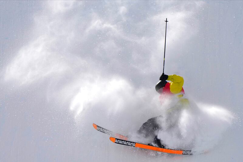 ZHANGJIAKOU, CHINA El sueco Hugo Burvall cae durante la calificación de una prueba en los Juegos Olímpicos de Invierno de 2022 en Zhangjiakou, China. (Francisco Seco/AP)