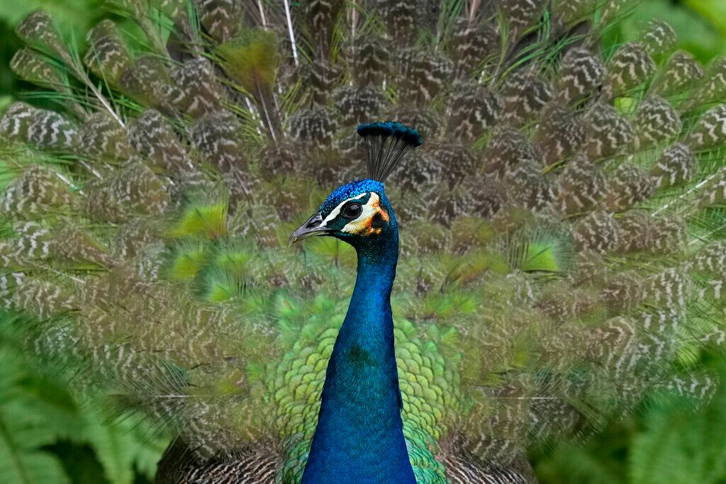 FLORIDA, ESTADOS UNIDOS Un pavo real joven se encuentra en el patio trasero de una casa en Coral Gables, Florida. La Comisión del Condado de Miami-Dade votó el mes pasado para regular las protecciones para los pavos reales, que se han convertido en un tema de división en los suburbios más exuberantes de Miami ya que su población ha crecido en los últimos años. (Rebecca Blackwell/AP)