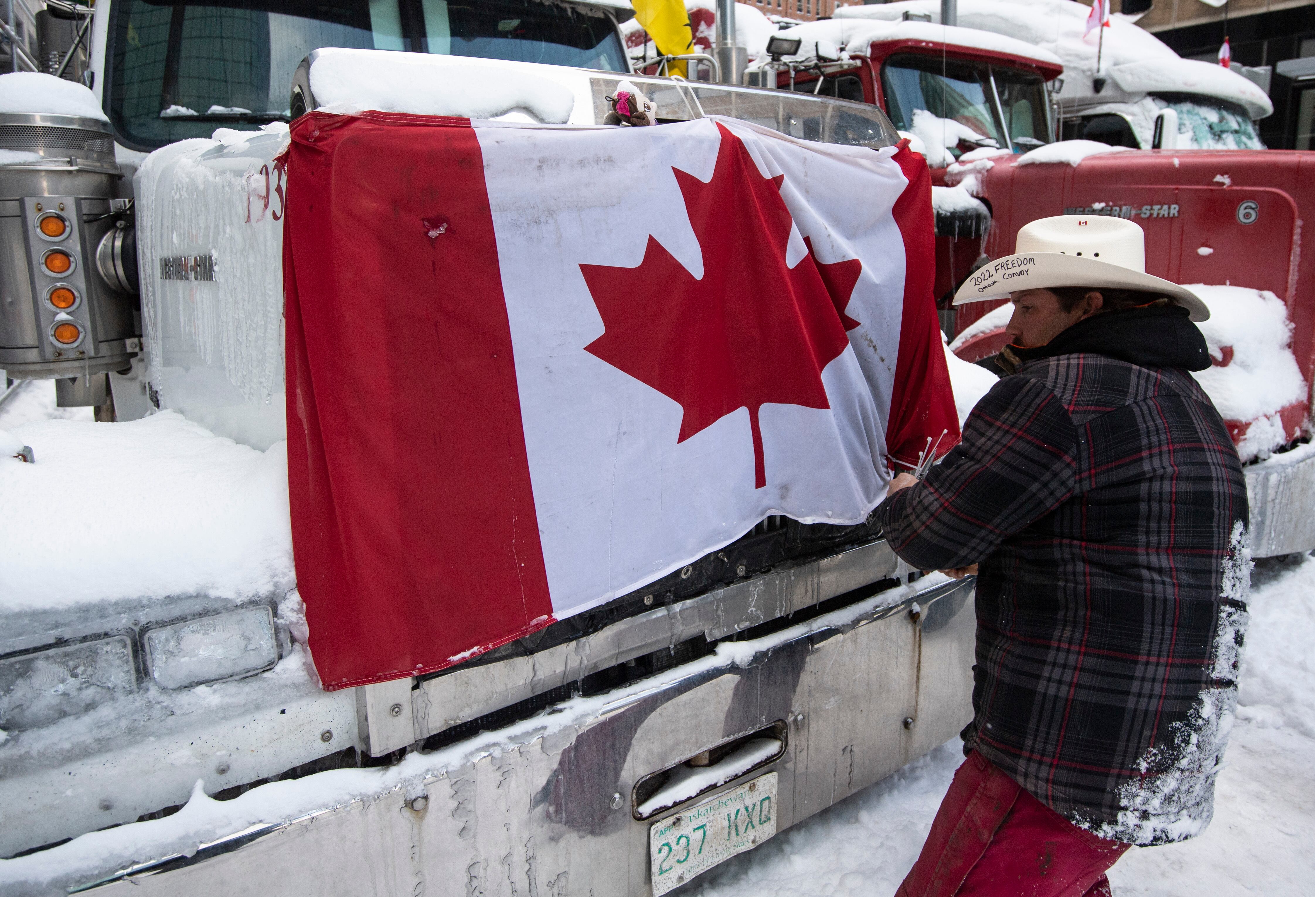 Los camioneros ignoraron las advertencias de que se exponían a detenciones, incautaciones de vehículos y congelación de cuentas bancarias según los nuevos poderes de emergencia reclamados por Trudeau. Los camioneros, estacionados en las calles y alrededores del Parlamento, hicieron sonar las bocinas en desafío de una orden judicial contra los claxon, emitida después de que los vecinos dijeran que el ruido constante estaba haciendo inhabitable el barrio.