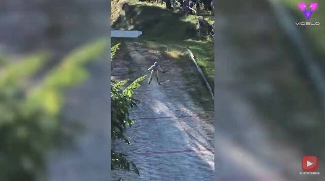 De esta manera, Andriy fue filmado haciendo sus saltos de esquí en las laderas, volando por las empinadas laderas de hierba.