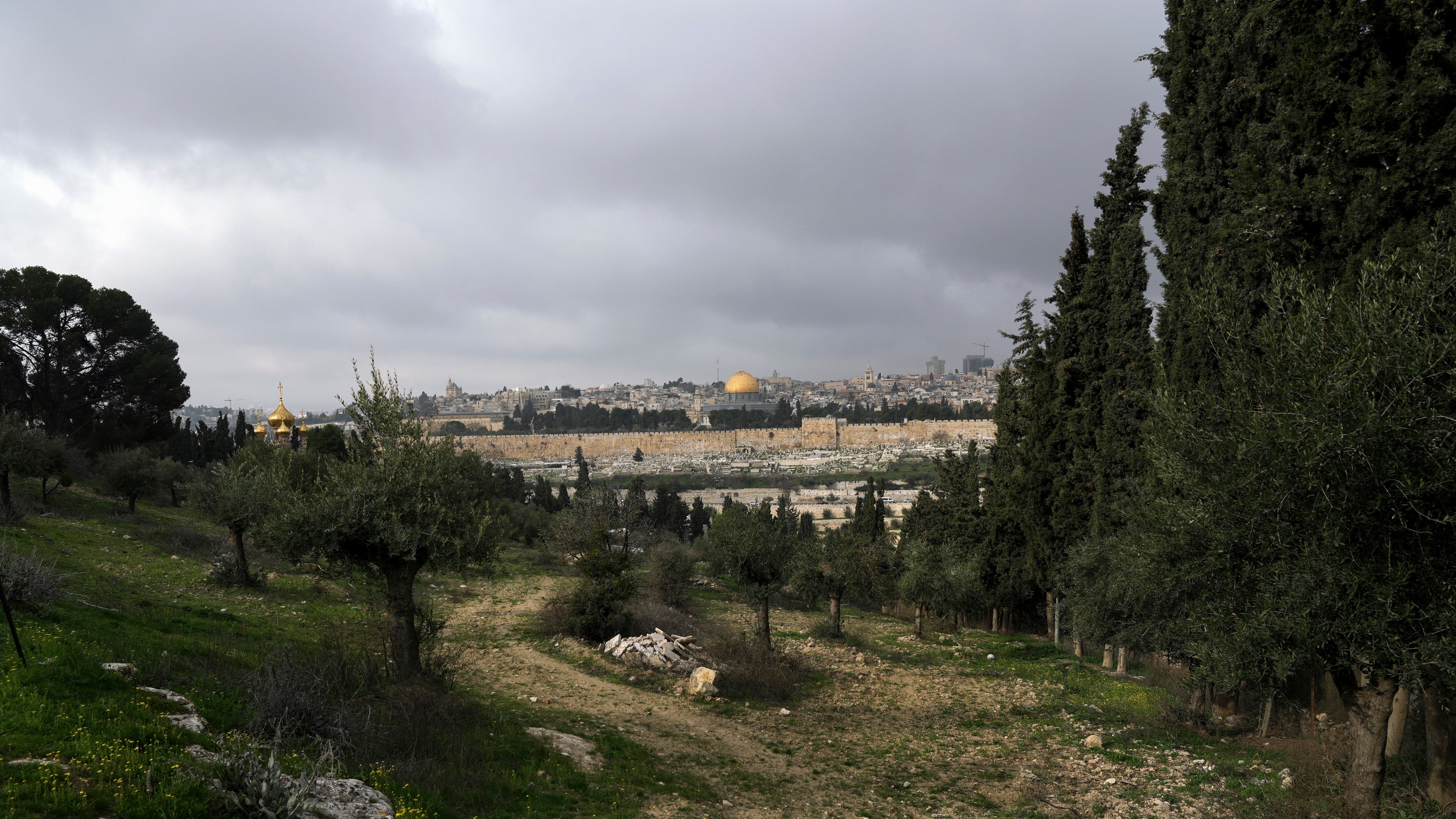 El Monte de los Olivos se alza sobre la Ciudad Vieja de Jerusalén y sus sitios son considerados sagrados para fieles de tres fes monoteístas. Sus cuestas al este de la Ciudad Vieja están salpicadas de iglesias de distintas sectas que marcan los lugares tradicionales de sucesos de la vida de Jesús.