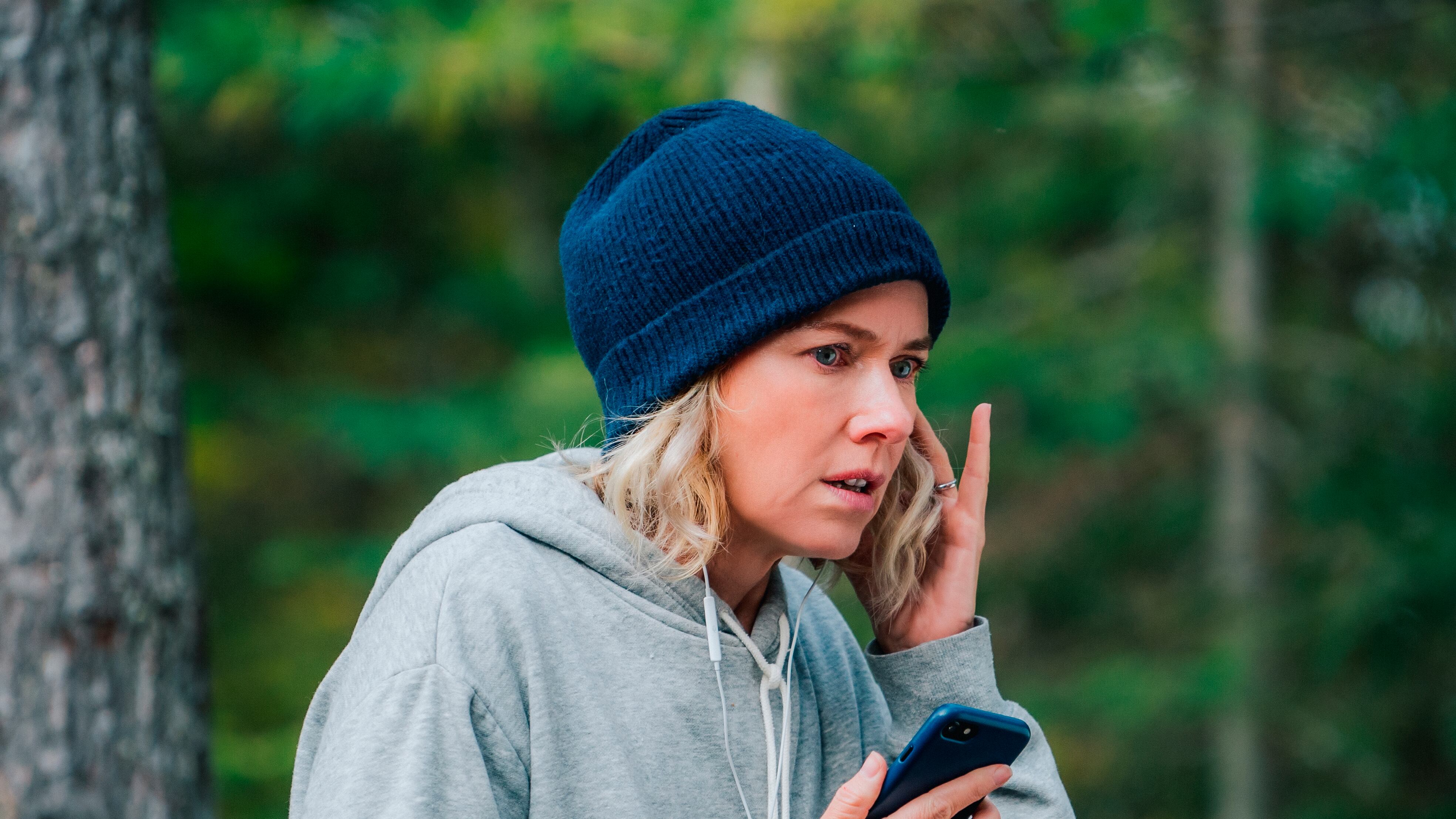 Perdida en el bosque, el teléfono es su único vínculo con el mundo.