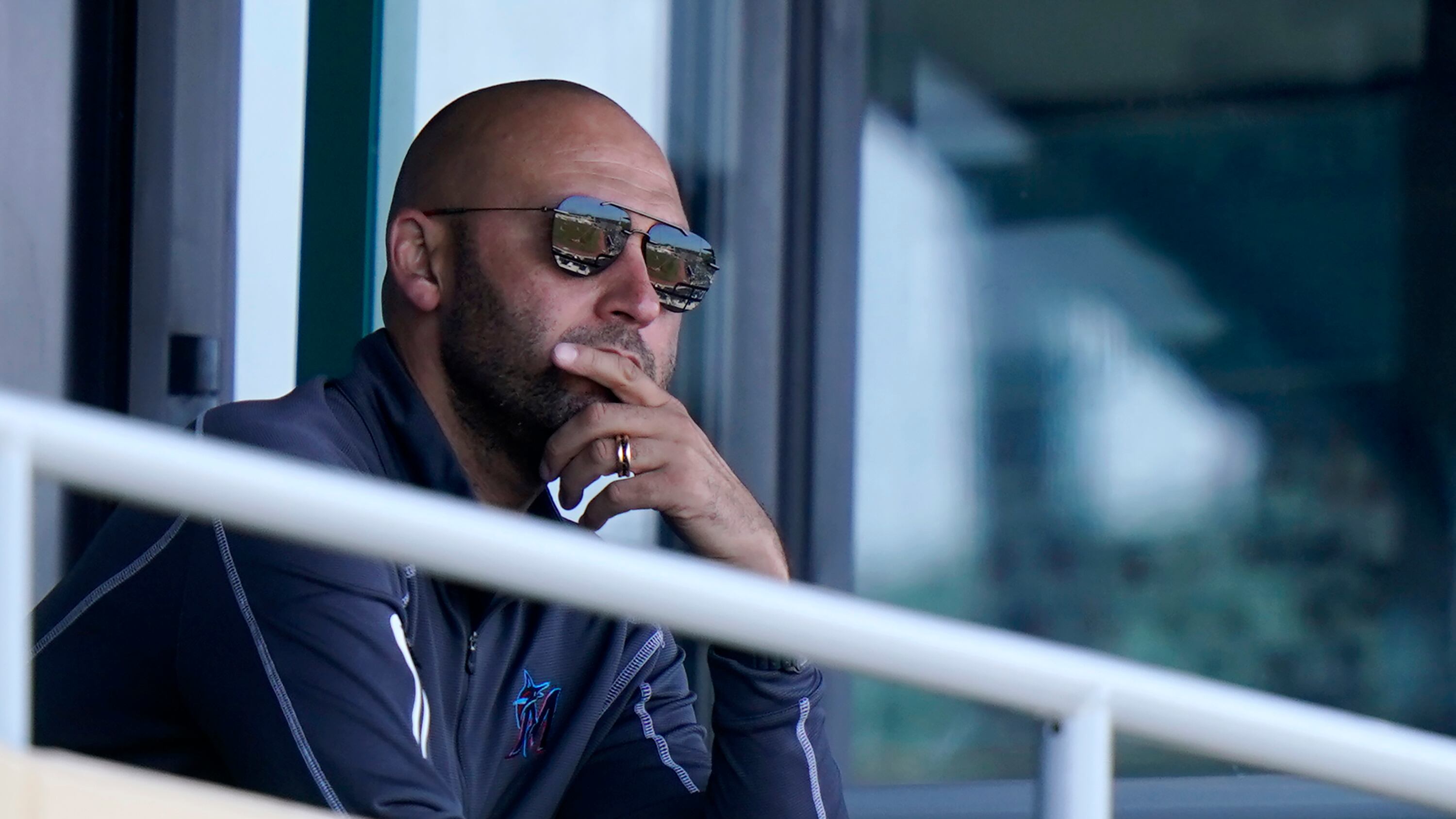 ARCHIVO - El CEO de los Marlins de Miami Derek Jeter observa un juego de pretemporada contra los Astros de Houston, el viernes 5 de marzo de 2021, en Jupiter, Florida. (AP Foto/Lynne Sladky) ARCHIVO – El CEO de los Marlins de Miami Derek Jeter observa un juego de pretemporada contra los Astros de Houston, el viernes 5 de marzo de 2021, en Jupiter, Florida. (AP Foto/Lynne Sladky) (Lynne Sladky/AP)