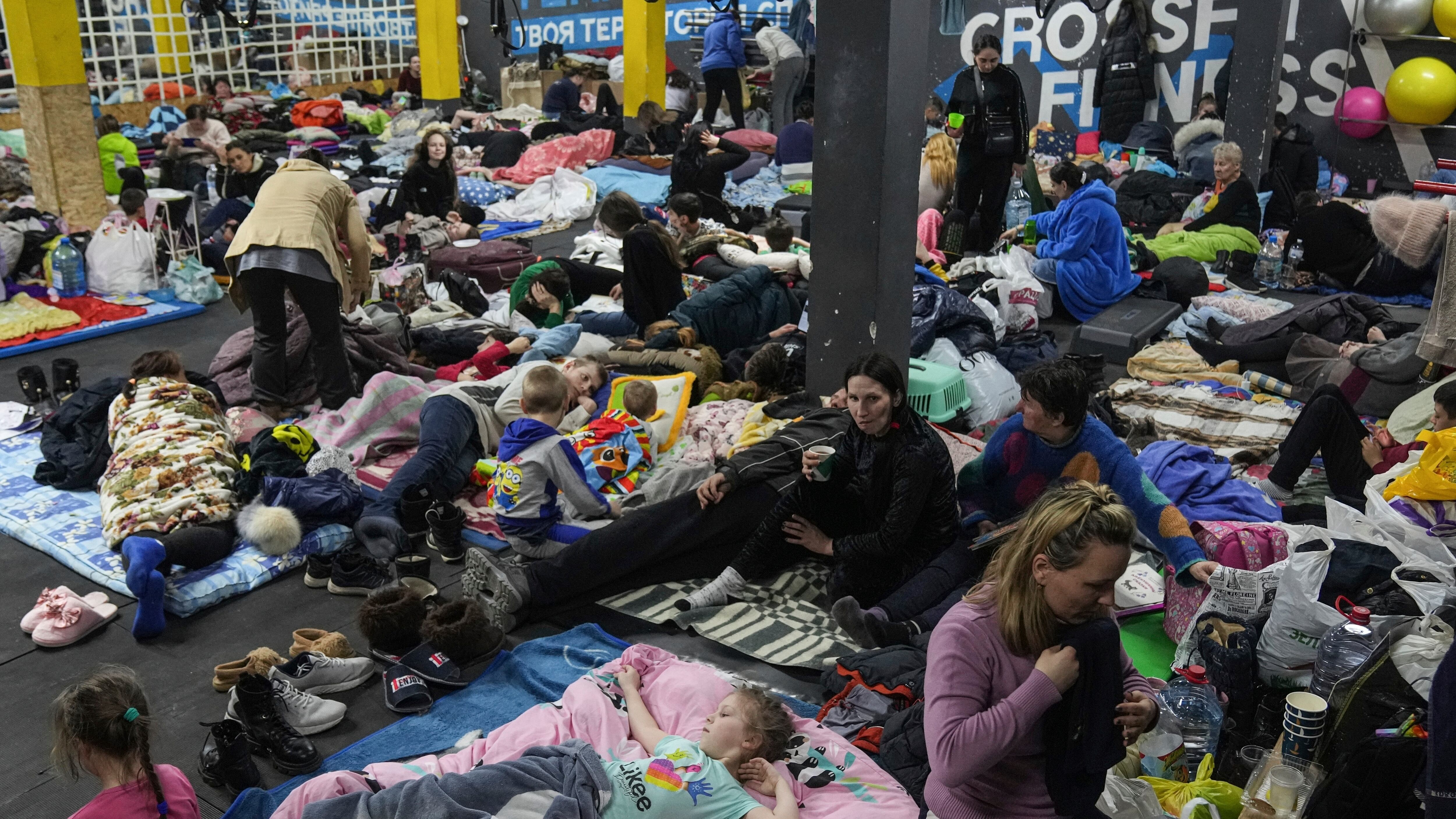 Muchos de los ocupantes recuerdan los bombardeos del 2014, cuando separatistas prorrusos capturaron brevemente la ciudad. Anna Delina sobrevivió ese ataque y ahora tiene dos hijos. Hace lo posible por consolarlos con palabras cariñosas y caricias, mientras ellos se cubren con mantas en el frío piso del gimnasio.