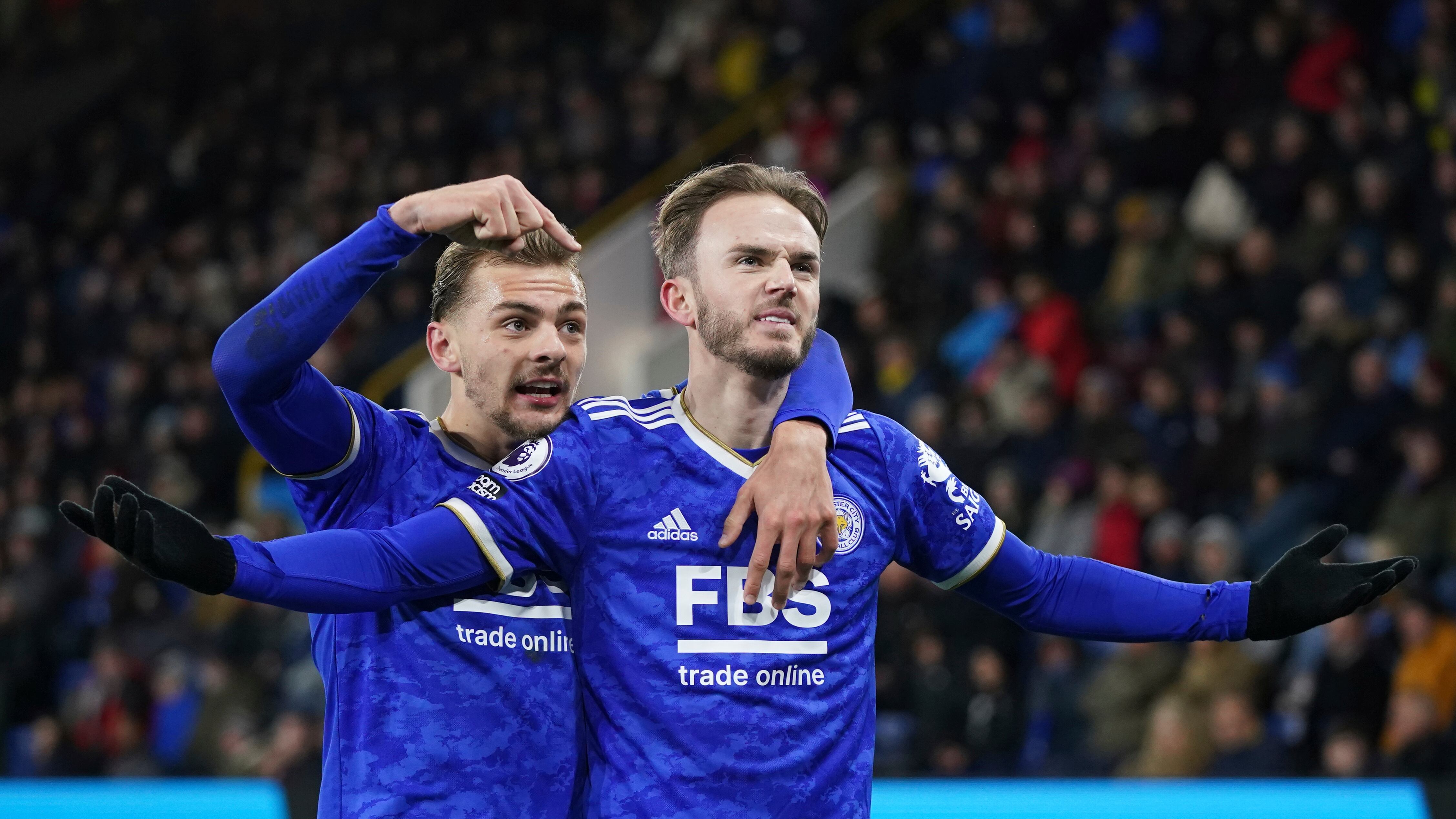 James Maddison y Jamie Vardy ingresaron desde la banca para anotar los goles de los visitantes en la segunda mitad del encuentro disputado en el Turf Moor.