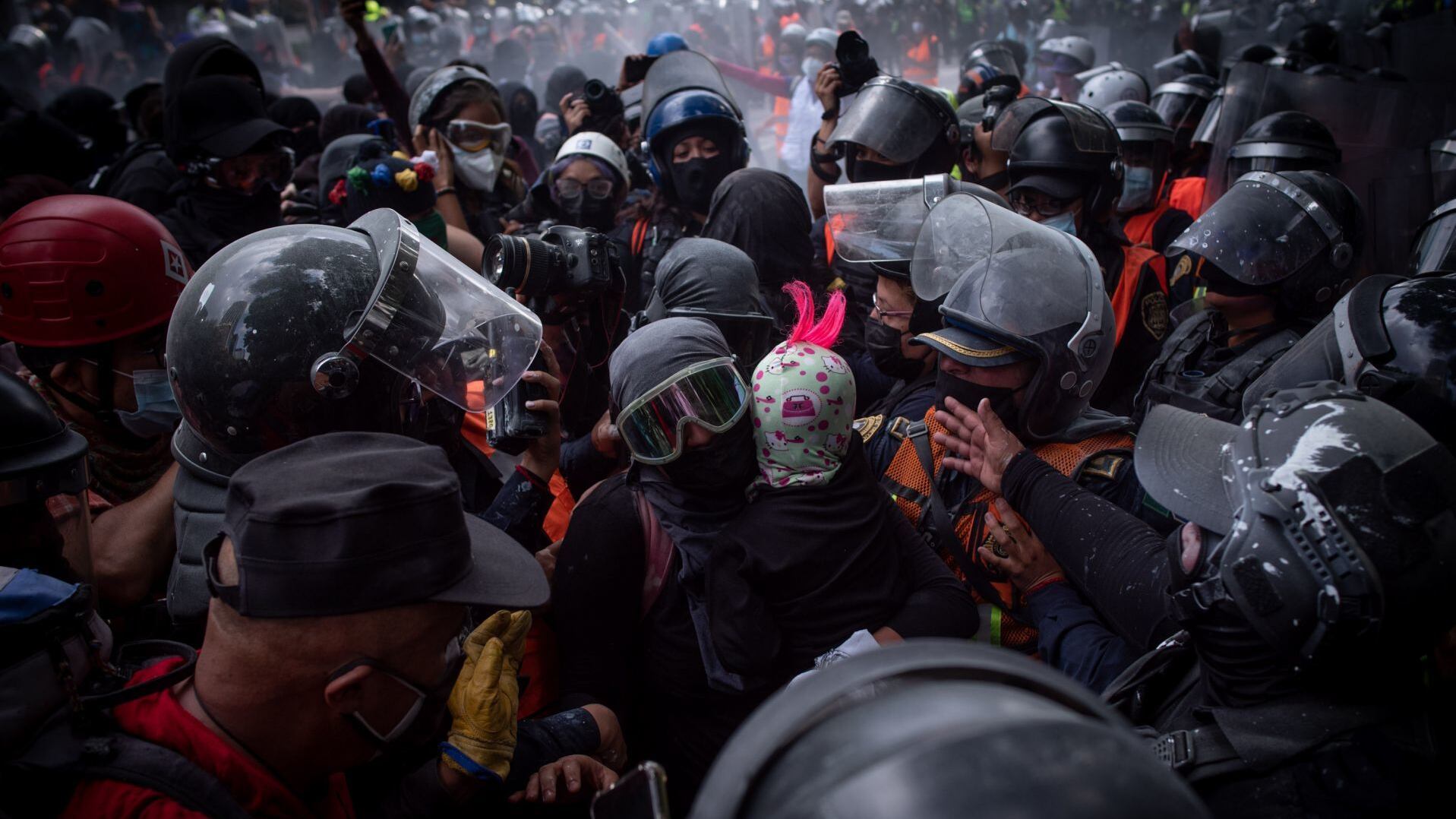 “Con estricto apego a los protocolos de derechos humanos, y de ser necesario, así como se ha realizado en ésta y en otras manifestaciones, se llevarán acabo encausamientos, supervisados por la Comisión de Derechos Humanos de la Ciudad de México, con el objetivo de evitar que personas con martillos, bombas molotov, petardos, tubos, palos, y cualquier objeto que pueda poner el peligro la integridad física de las manifestantes, ingresen a la misma”.
