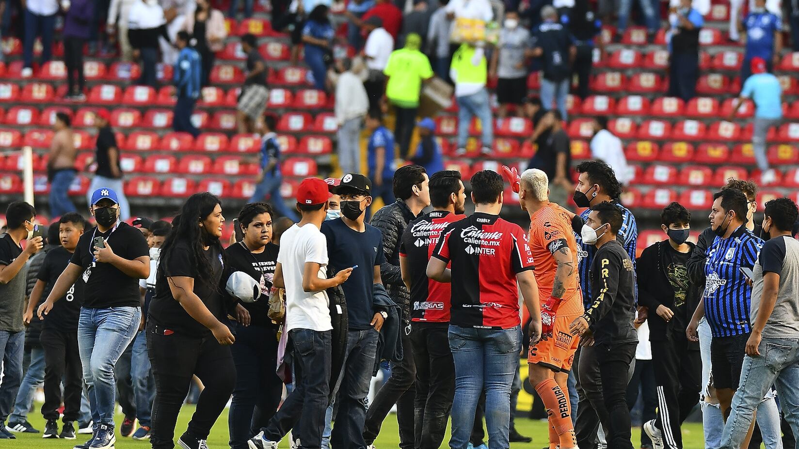 Pasando el minuto 62, una persona cruza la cancha, Furch lo señala, mientras que el portero de Querétaro, Washington Aguerre, intenta detenerlo. El partido se detiene y familias de aficionados comienzan a invadir el campo para refugiarse de la violencia de las gradas.