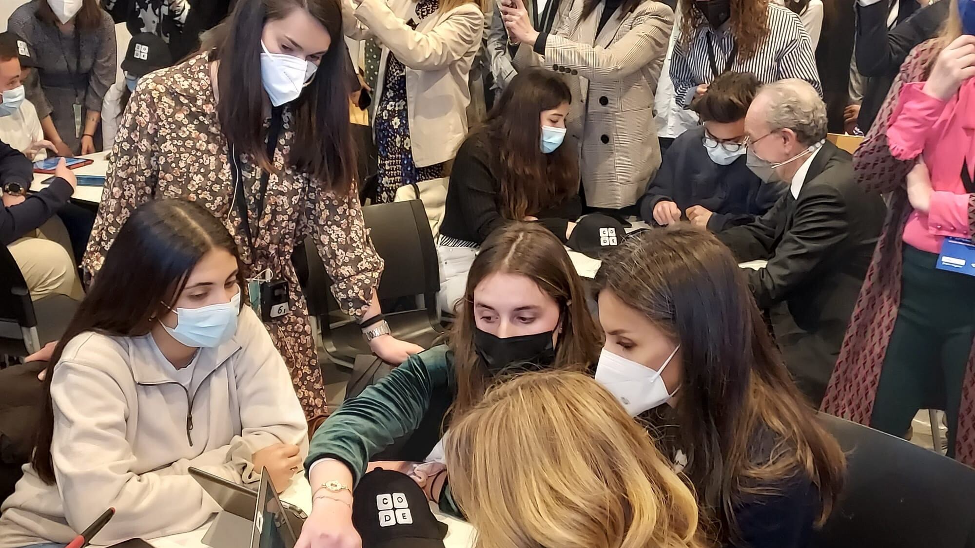 Los reyes mostraron su interés y trasladaron su felicitación a las estudiantes por su desempeño en el taller ‘Let’s Code: aprender a programar en edades tempranas’, según informa el centro educativo en una nota de prensa.