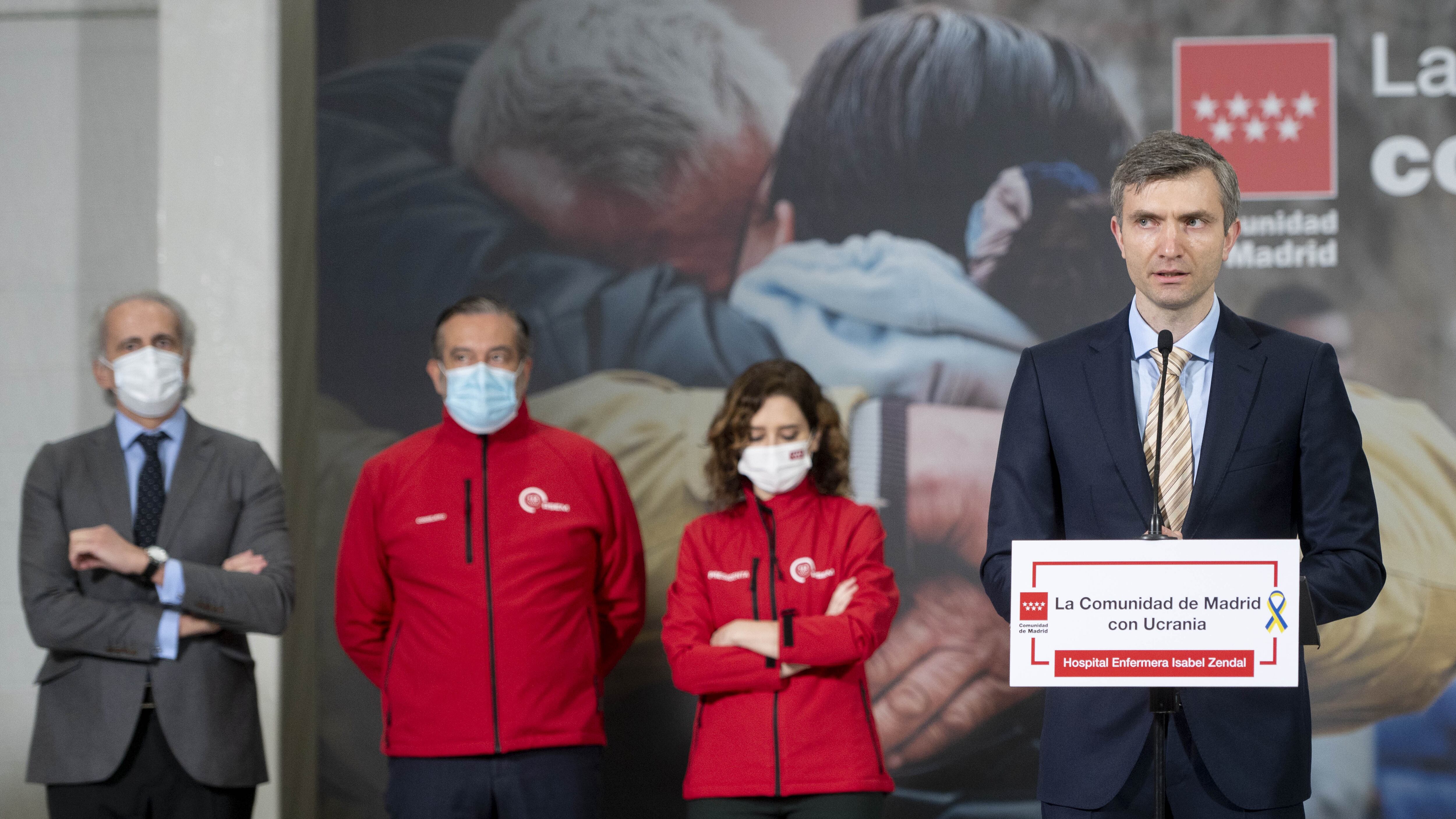 «Estoy seguro de que dentro de poco, mostrando todos resistencia y solidaridad, venceremos, la cuestión es el precio que el pueblo ucraniano tendrá que pagar», ha reconocido durante la visita junto a la presidenta de la Comunidad de Madrid, Isabel Díaz Ayuso, al centro de coordinación logístico habilitado por el Gobierno regional en el Hospital público Enfermera Isabel Zendal.
