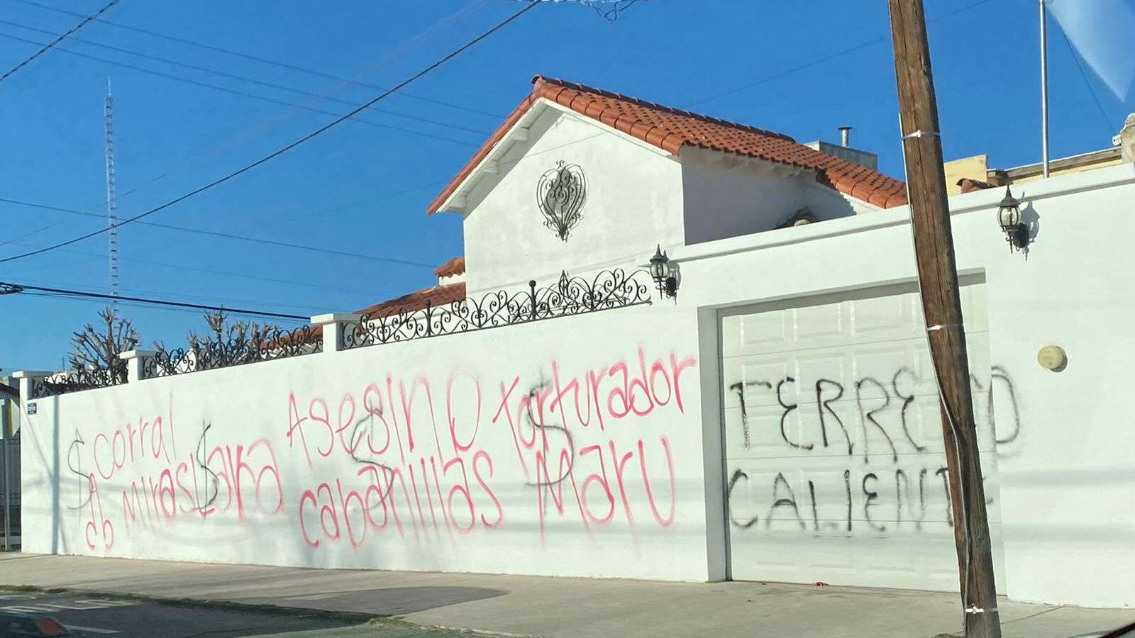 La casa del ex gobernador de Chihuahua, Javier Corral Jurado, amaneció con unos grafitis en su fachada, donde le escribieron las palabras ‘asesino’, junto con los nombres de la periodista Miroslava Breach y la activista Isabel Cabanillas, ambas asesinadas en la entidad durante su administración.