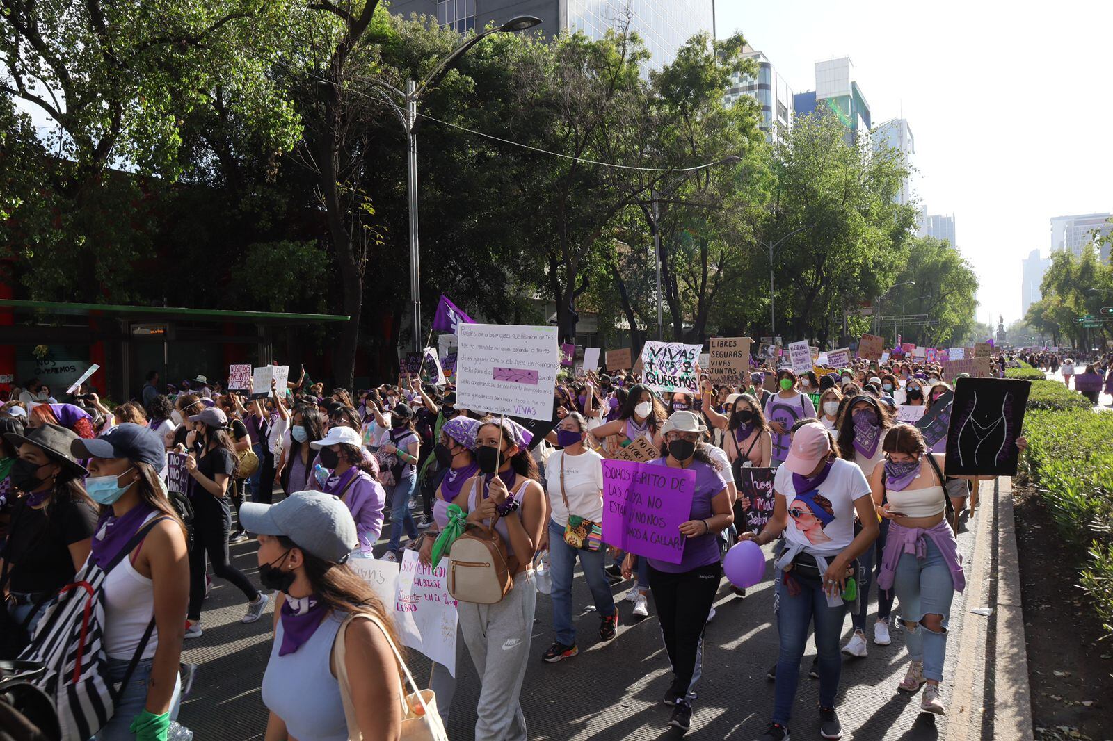 Alrededor de las 14:00 horas comenzaron las movilizaciones en Reforma y en el Monumento a la Revolución con avance al Zócalo capitalino. Las manifestantes a su paso hicieron pintas en las vallas que colocó el gobierno capitalino para resguardar edificios y monumentos.