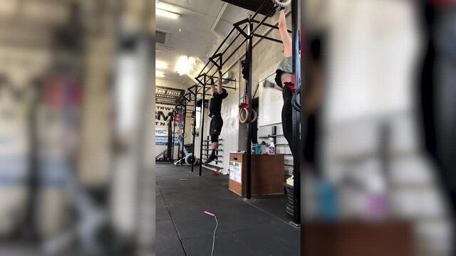 La barra a la que se agarró Courtney era mucho más gruesa de lo que está acostumbrada, por lo que su agarre no era tan fuerte, y cuando se levantó acabó cayendo y chocando con las pesas de abajo.