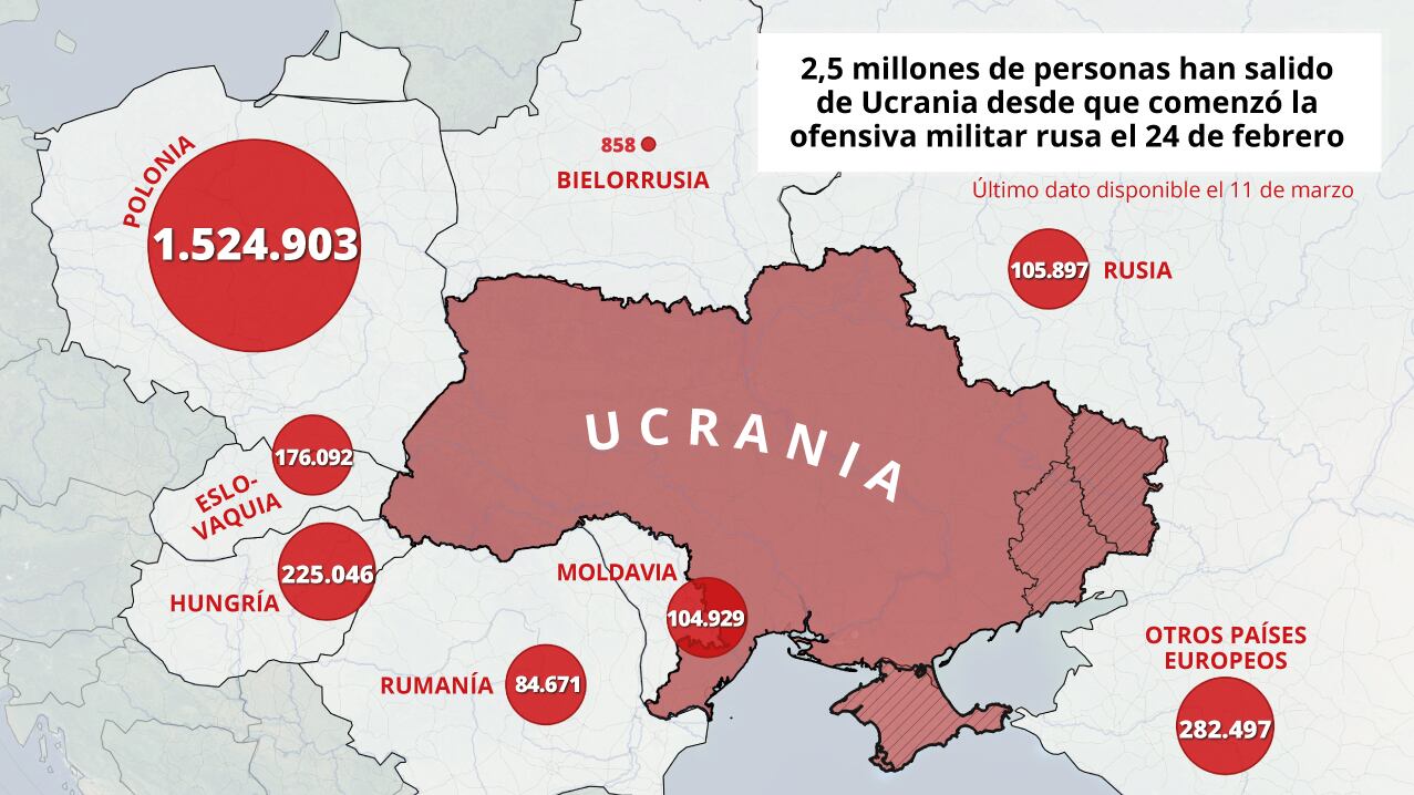 Unos 2,5 millones de personas han salido de Ucrania desde el inicio de la invasión rusa