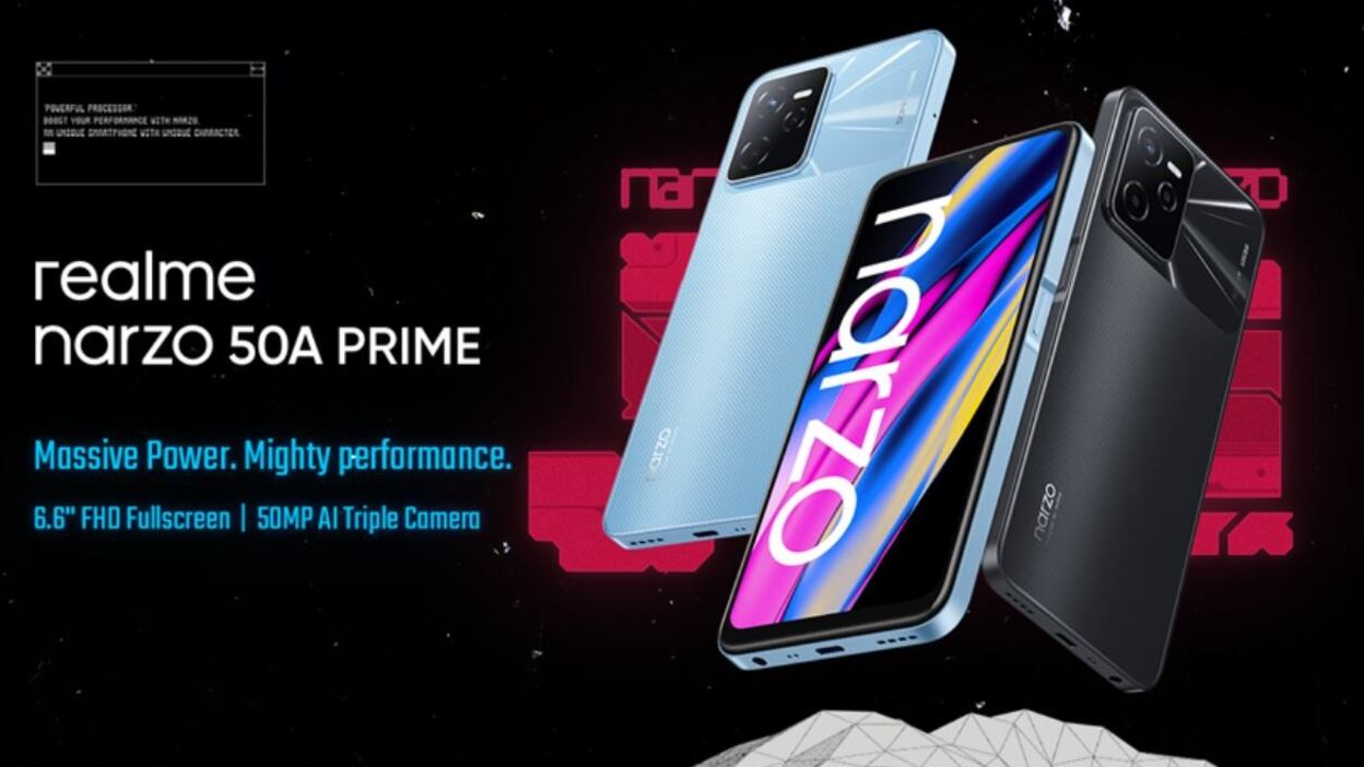 El nuevo integrante de la serie Narzo de realme, enfocada a los ‘gamers’, realme Narzo 50A Prime, estará equipado con una pantalla FHD de 6,6 pulgadas y una cámara triple con una lente principal AI de 50 megapíxeles.