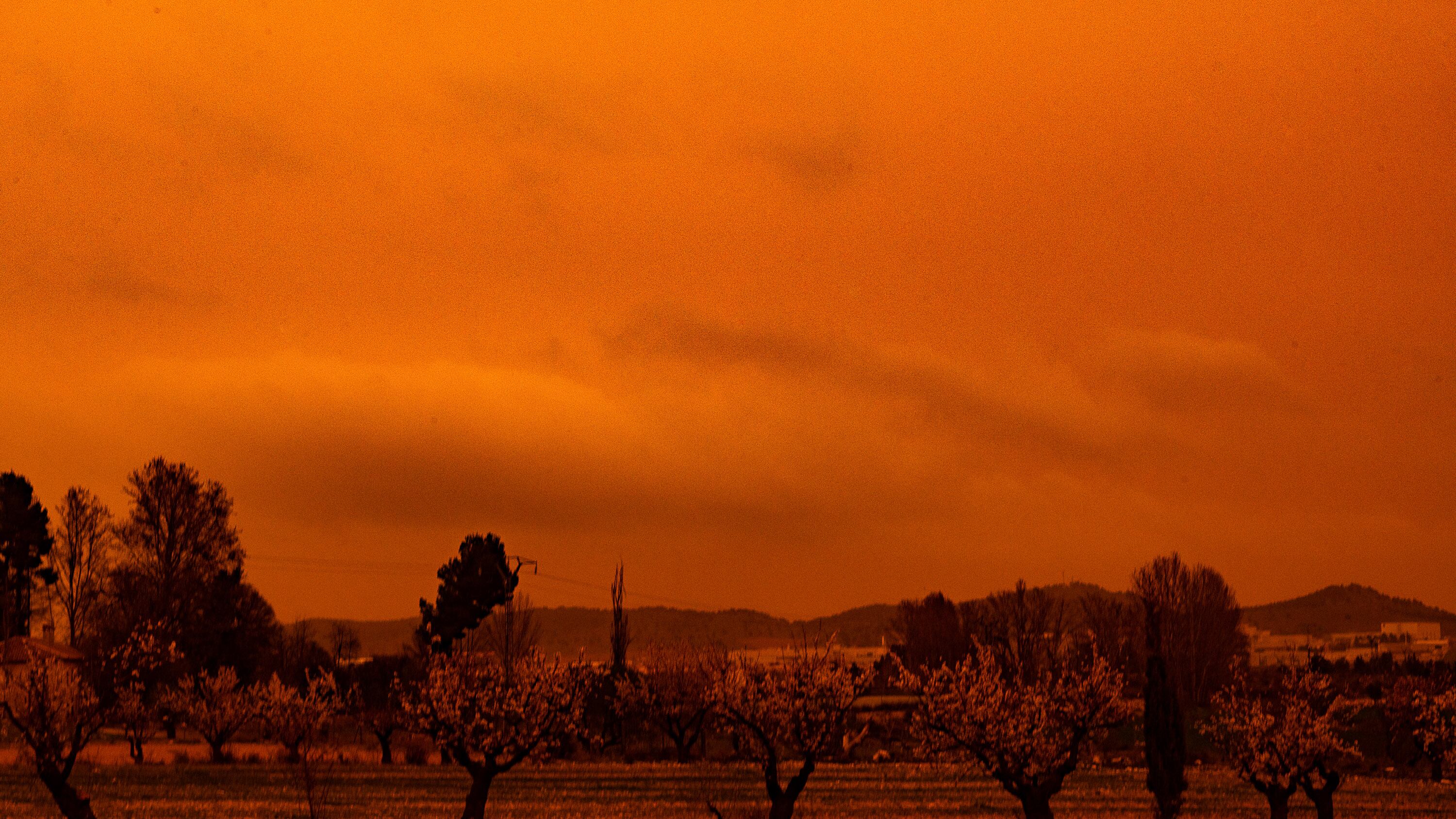 La Sociedad Española de Neumología y Cirugía Torácica (SEPAR) ha recomendado a la población que utilice mascarilla y evite hacer deporte en exteriores ante el paso de la borrasca Celia por la península ibérica, que ha traído consigo la calima, con un manto rojizo de polvo y barro, a la vez que ha teñido el cielo de color naranja.