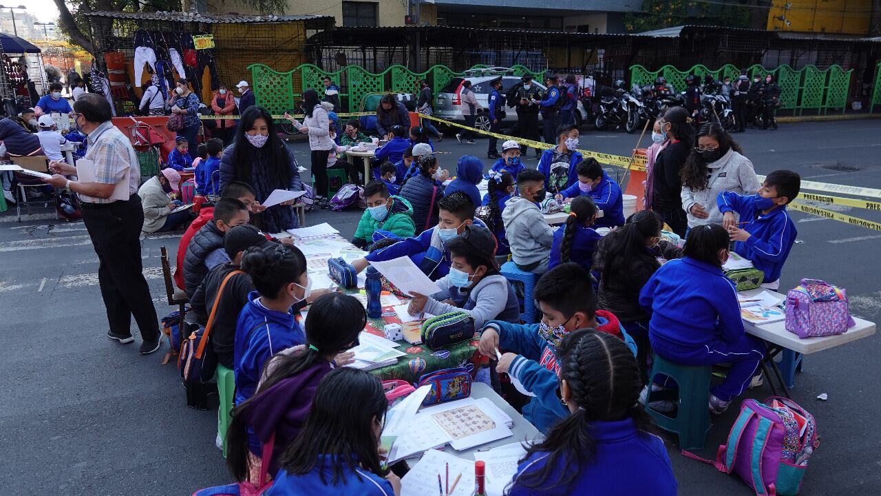 Desde el pasado 14 de marzo, alumnos de la escuela primaria ‘Cristobal Colón’ -calle Corregidora número 83, alcaldía Cuauhtémoc, en la Ciudad de México- toman clases en la calle debido a que el plantel fue cerrado supuestamente por los daños causados en el temblor de 2017.