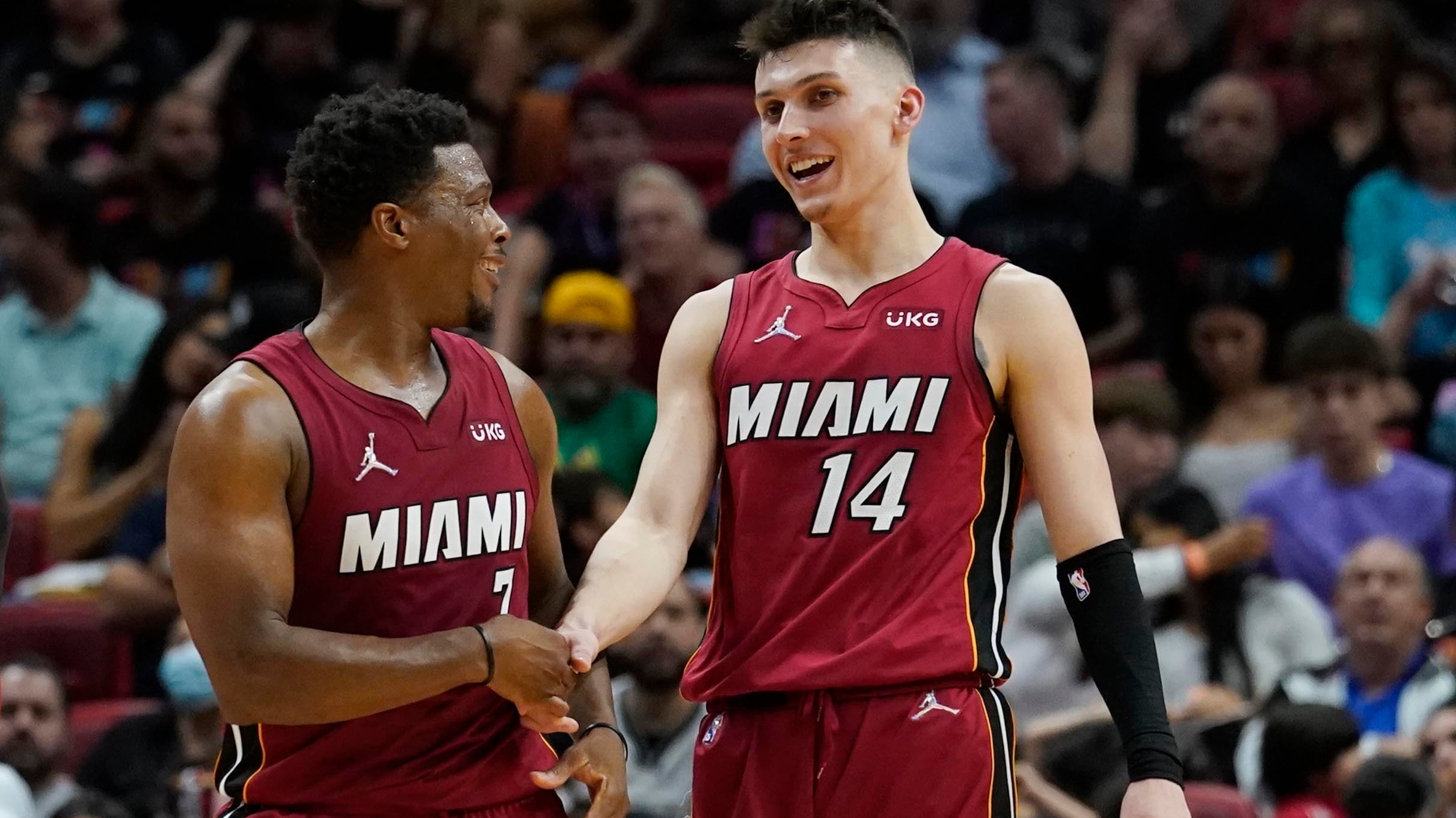 Strus, quien jugó en la segunda mitad luego que Jimmy Butler se marchó por un esguince de tobillo, anotó 13 unidades en un tramo de 2:55 minutos del último cuarto. Ayudó así a la remontada de Miami.