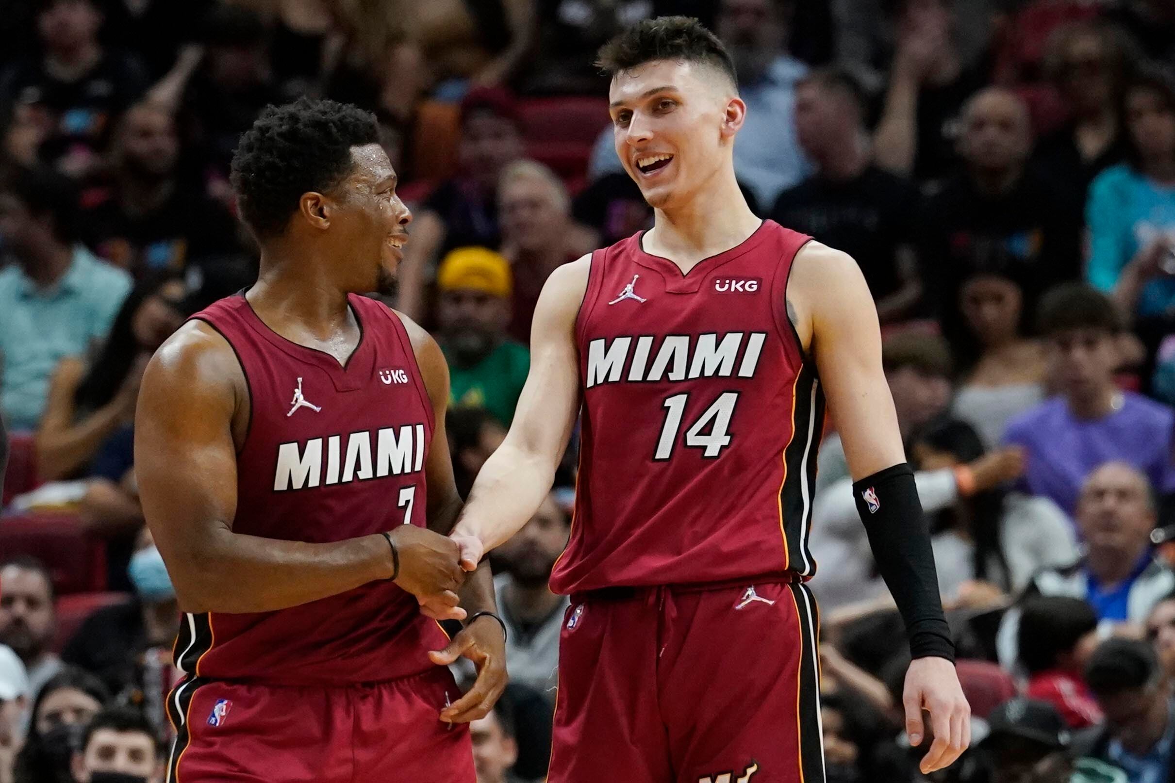 Strus, quien jugó en la segunda mitad luego que Jimmy Butler se marchó por un esguince de tobillo, anotó 13 unidades en un tramo de 2:55 minutos del último cuarto. Ayudó así a la remontada de Miami.