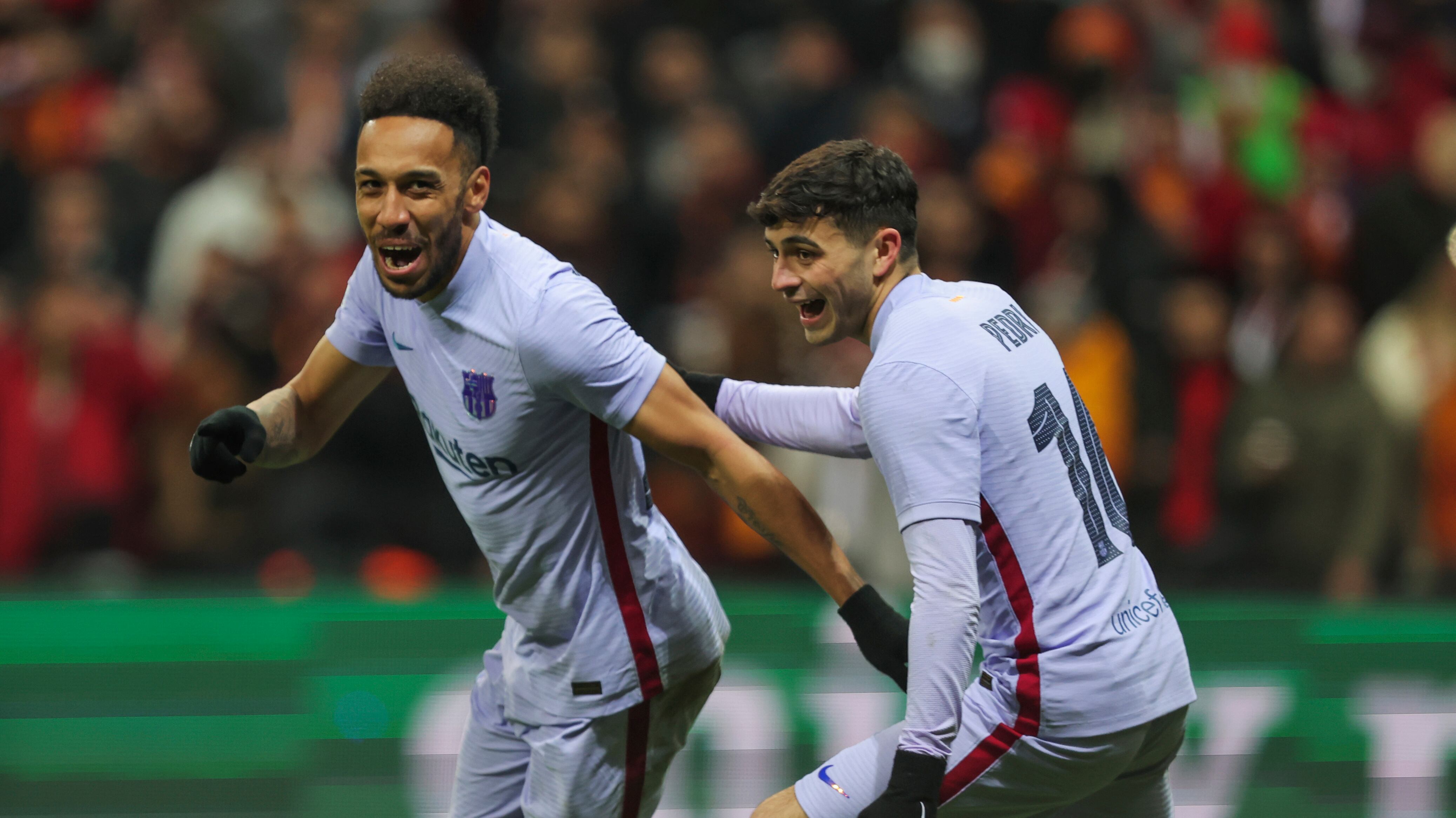 Pedri firmó un notable gol y Pierre-Emerick Aubameyang sentenció para que el Barcelona derrotase el jueves 2-1 al Galatasaray, con el alicaído club catalán accedió a los cuartos de final de la Europa League.