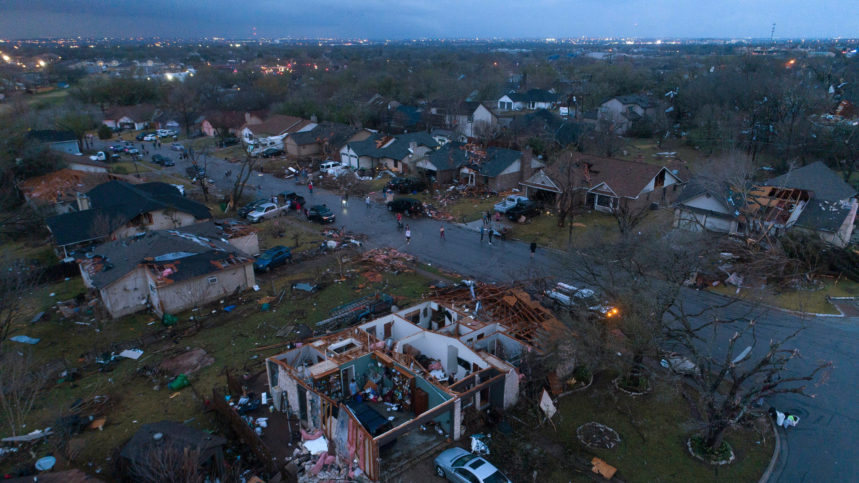 En Texas, varios tornados fueron reportados el lunes a lo largo de la carretera Interestatal 35, particularmente en los suburbios de Austin de Round Rock y Elgin y en un área al oeste-noroeste de Dallas-Fort Worth. Otro tornado causó daños en el pueblo de Kingston, en el sur de Oklahoma.