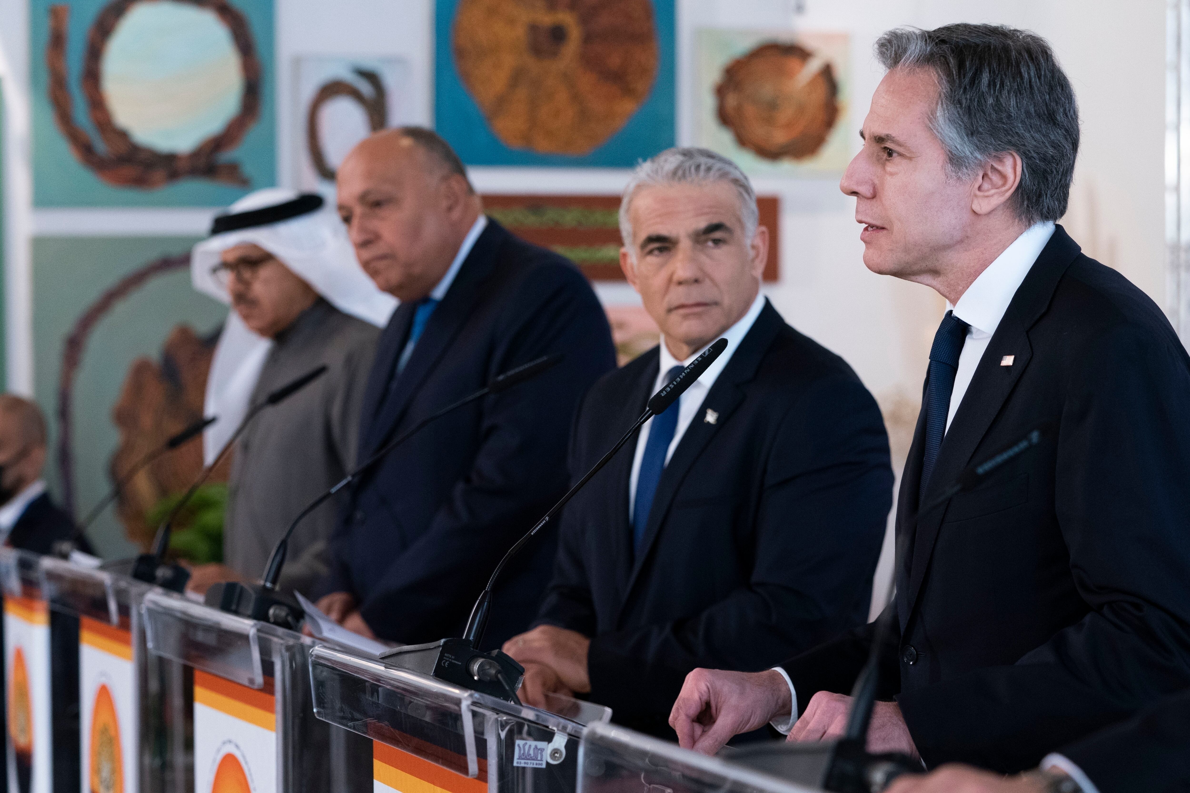 Reunidos en un centro turístico en el desierto del Néguev en el sur de Israel, los ministros y el secretario de Estado de Estados Unidos, Antony Blinken, prometieron aumentar la cooperación para incluir asuntos de energía, medio ambiente y seguridad, e intentar incluir a otros en los acuerdos.