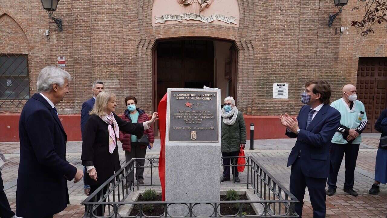 El alcalde de Madrid, José Luis Martínez-Almeida ha inaugurado este lunes un monolito en homenaje a la piloto María de Villota en la calle Melquíades Biencinto de Puente de Vallecas, frente a la parroquia San Ramón Nonato, donde la deportista está enterrada.