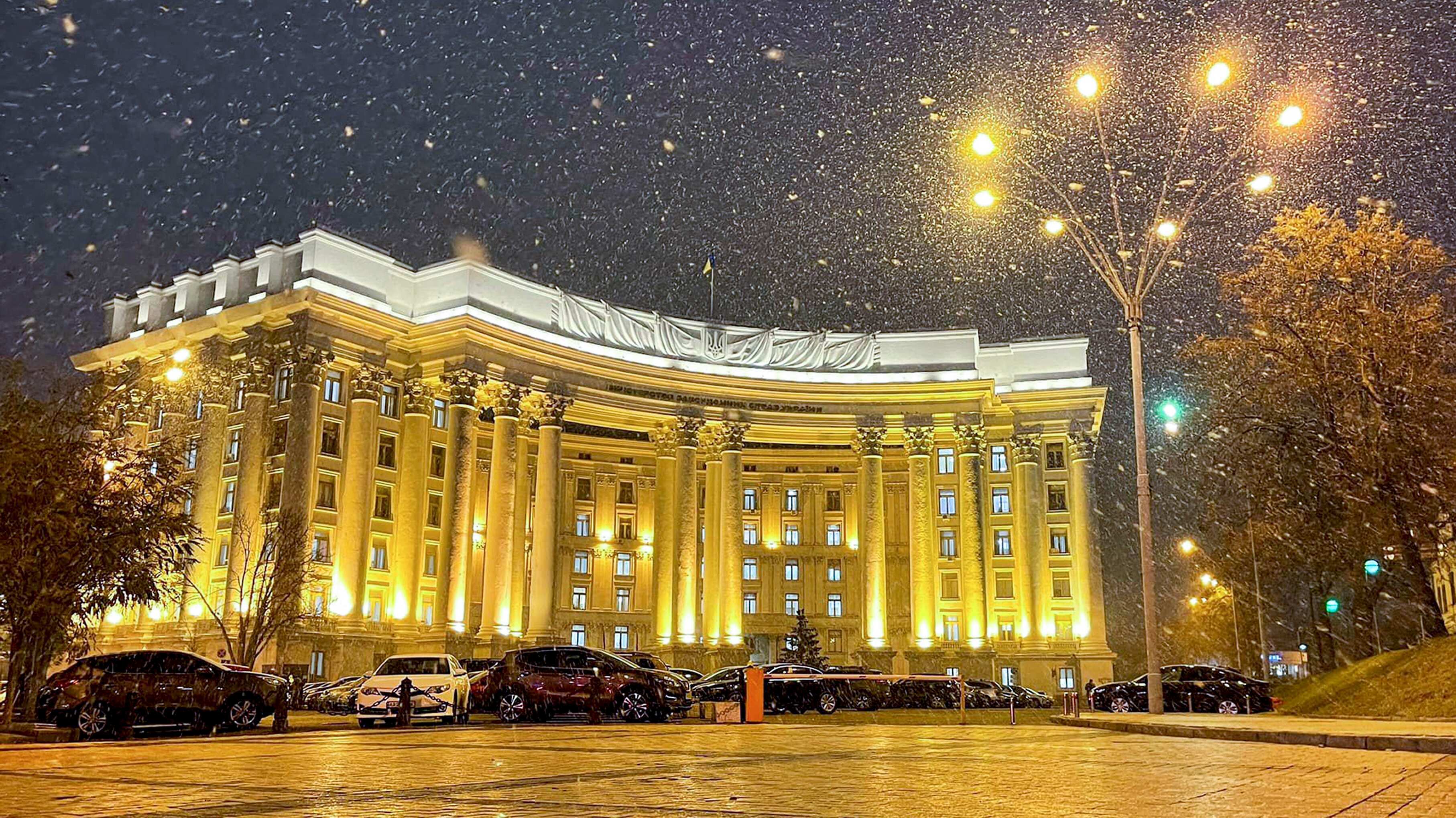 En esta foto, dada a conocer por el servicio de prensa del Ministerio de Relaciones Exteriores de Ucrania, se ve el edificio del ministerio en Kiev. Un ciberataque dirigido a una red de satélites usada por el gobierno de Ucrania y agencias militares poco (AP)