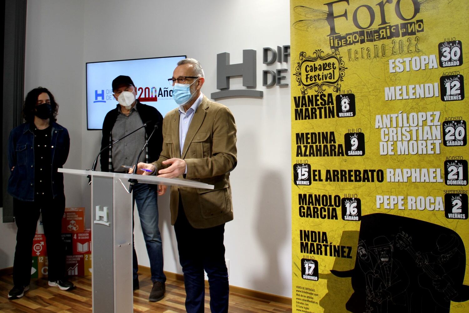 La Diputación de Huelva ha presentado este miércoles la programación musical del Foro Iberoamericano de La Rábida 2022, que contará con figuras como las de Manolo García, Raphael, Estopa, Melendi o Vanesa Martín, además de artistas onubenses como Pepe Roca o Cristian de Moret.
